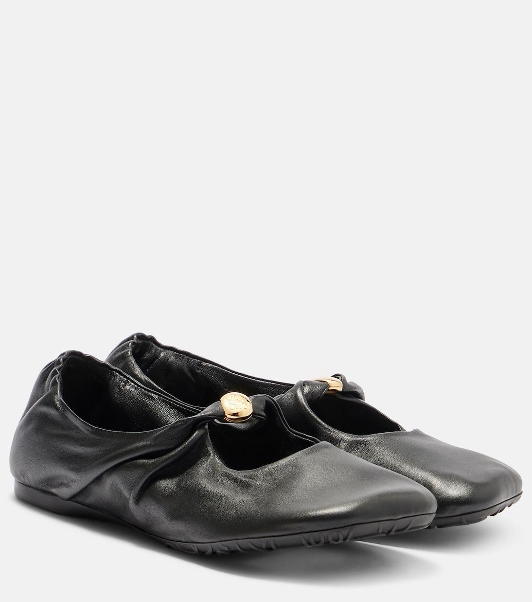 Все кожаные изделия Loewe производятся вручную в Испании, что отражает многовековой опыт и мастерство бренда. Балетки Pebble Soft, искусно изготовленные из мягкой овечьей кожи наппа, отличаются фирменным носком в форме лепестка и одноименной отделкой.