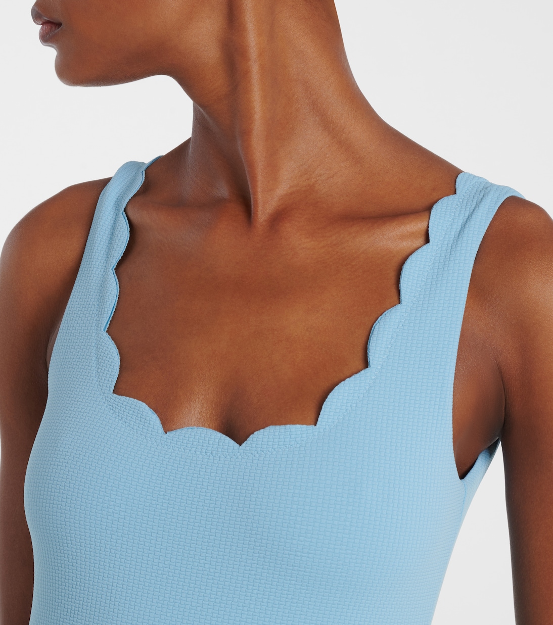 Пляжный гламур в полной мере воплощен в купальнике Palm Springs от Marysia. Дизайн, вдохновлённый океаном, дополняется фестончатым краем.