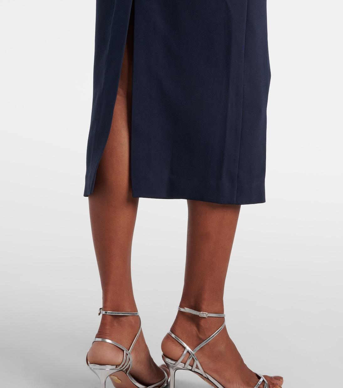 Это платье миди от Self-Portrait отличается элегантным силуэтом с элегантным воротником и частично застегивающимся спереди. Модель дополнена съёмным поясом, который подчеркивает талию.