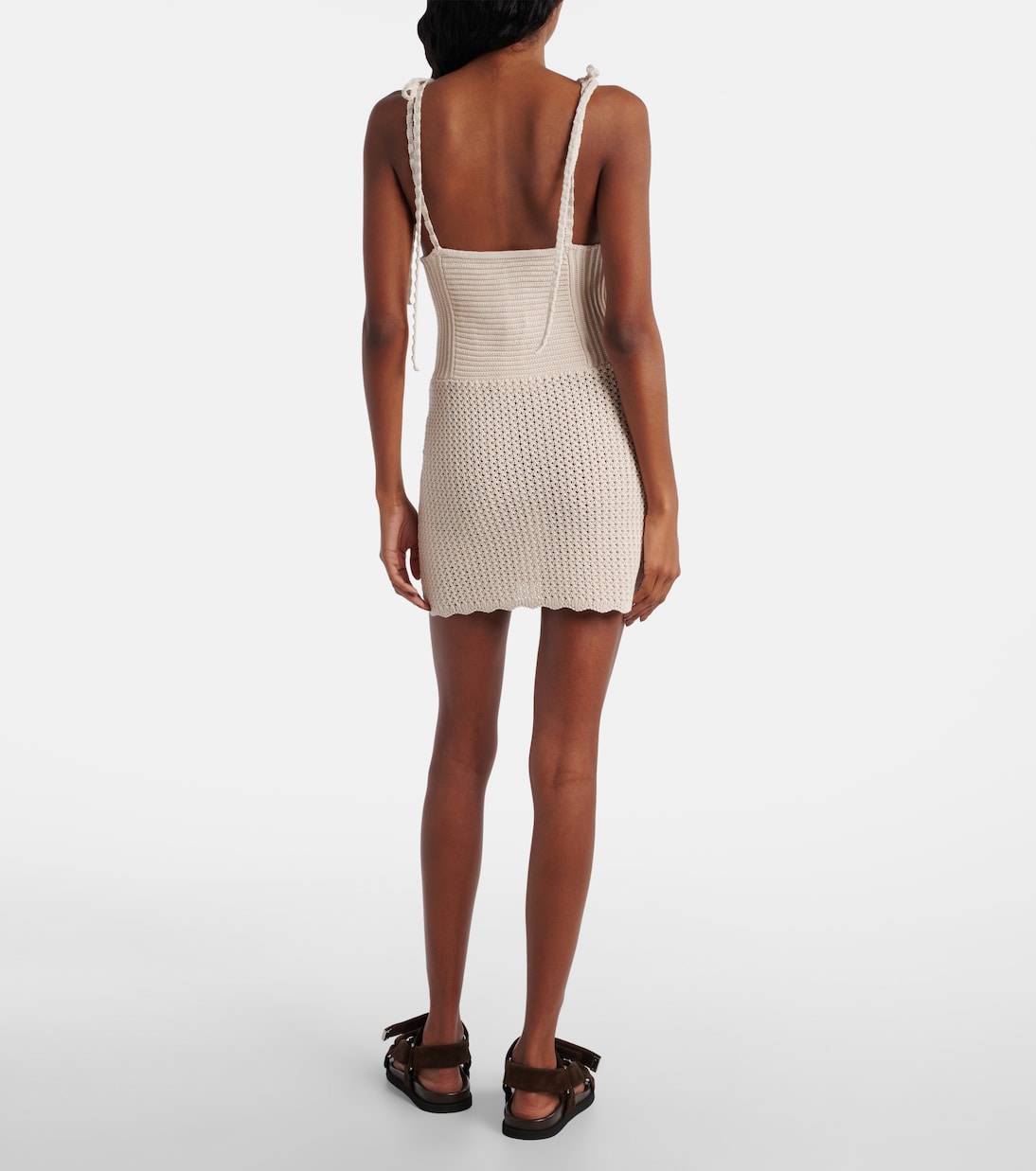 Это платье от The Attico, искусно связанное из мягкого хлопка, станет идеальной основой для элегантных образов для отдыха. Длина мини дополнена завязками на плечах.