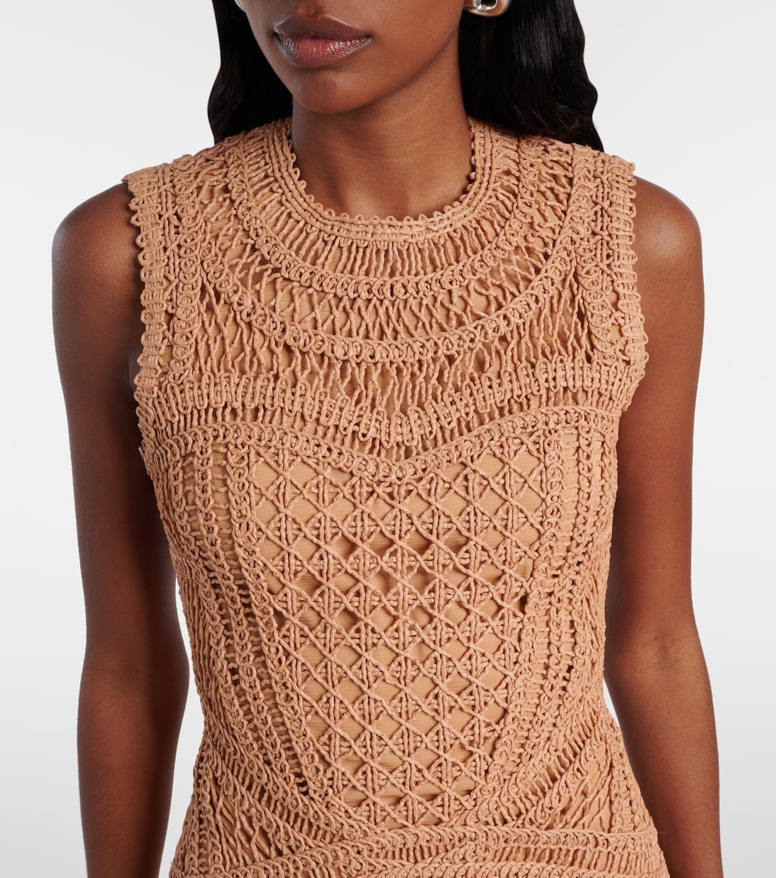 Подчеркните любовь Симхай к игривым фактурам в мини-платье Coen. Это приятное на ощупь изделие, созданное из гипюра с добавлением рафии, призвано произвести впечатление.