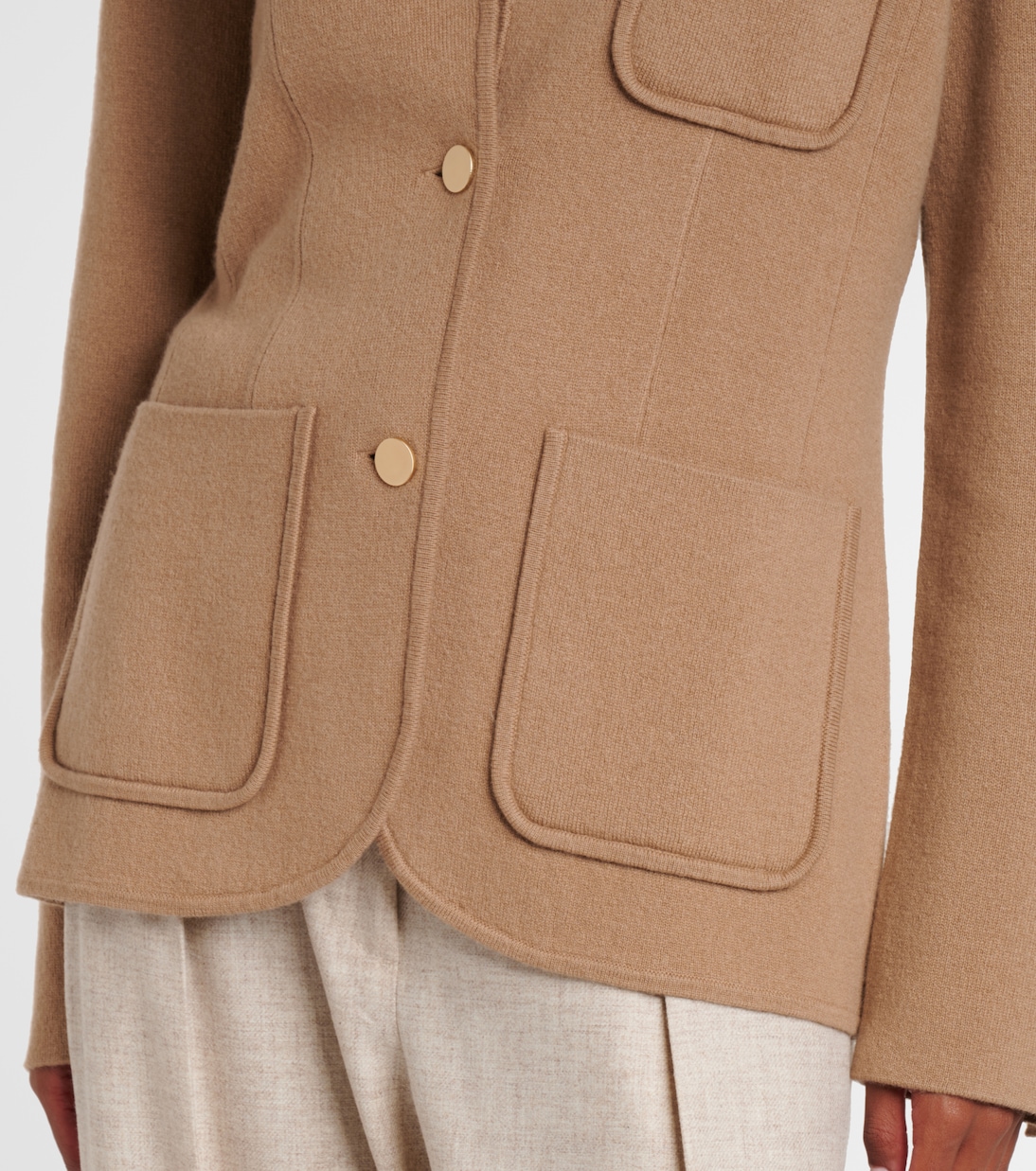 Этот блейзер от Jardin des Orangers — тёплый вариант для холодной погоды благодаря универсальному крою и мягкой шерсти с кашемиром. Застёжка на две пуговицы и три практичных накладных кармана.