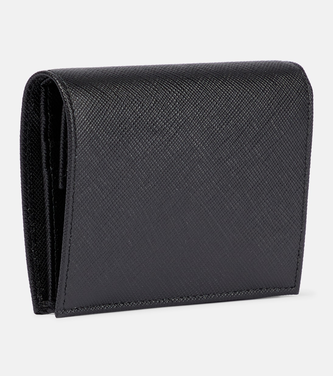 Поклонники Prada оценят этот кошелек, украшенный фирменной треугольной пластиной с логотипом бренда. Изготовлен из сафьяновой кожи с эффектом штриховки и имеет четыре отделения для карт, отделение для купюр и карман для монет на кнопке.