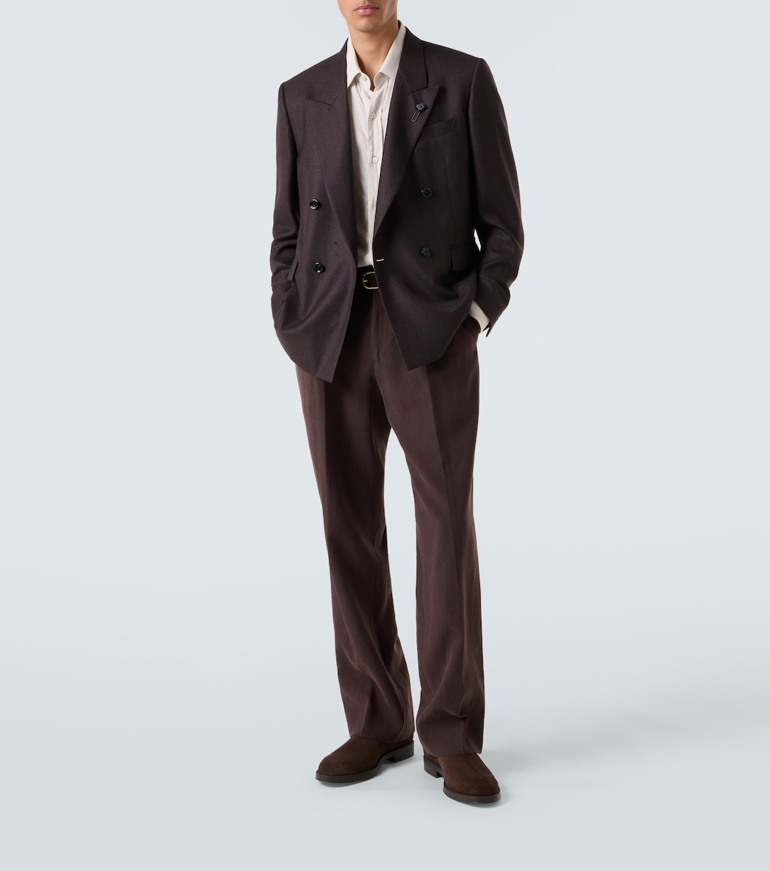 Этот изысканный двубортный блейзер от Lardini, изготовленный в Италии из шерсти, обеспечивает изысканную, но при этом комфортную посадку. Стильный дизайн с клетчатым узором, острыми лацканами, карманами с клапанами без швов и структурированными плечами.