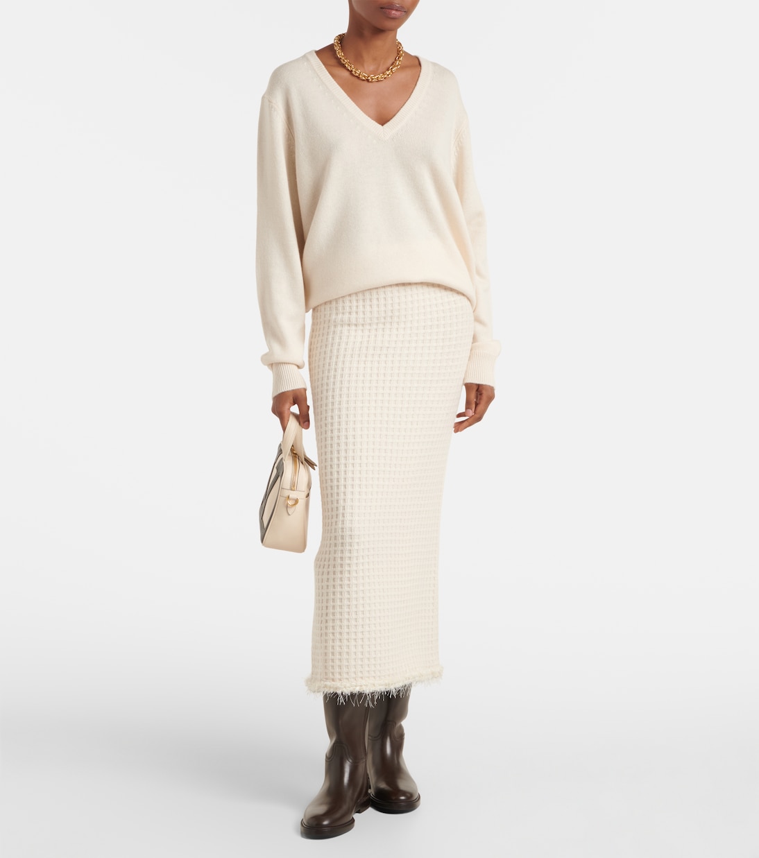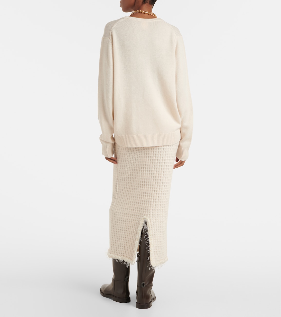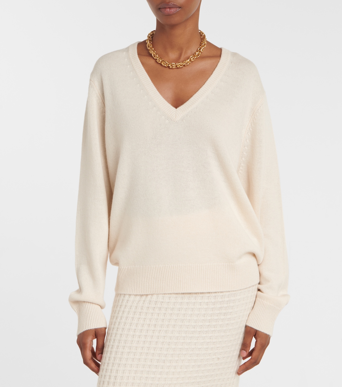 Пополните свой гардероб удобными в носке трикотажными изделиями от Jardin des Orangers – каждое изделие невероятно мягкое и долговечное. Этот свитер из шерсти и кашемира имеет привлекательный V-образный вырез с отделкой в рубчик.