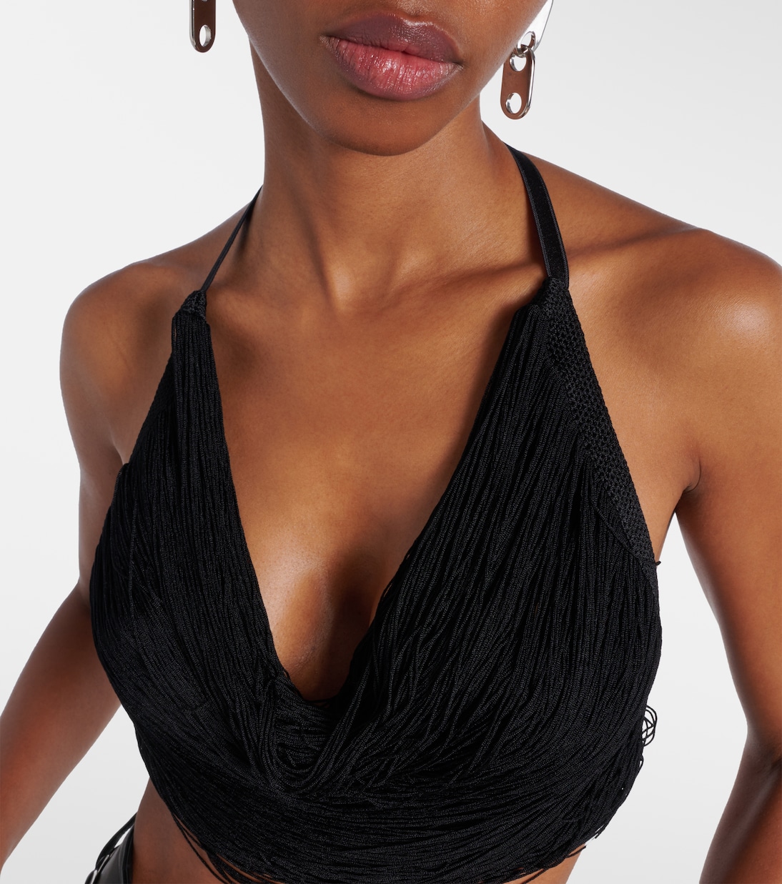 Выразите свою индивидуальность с этим бюстгальтером-бралеттом The Attico с завязкой на шее и каскадной бахромой. Этот смелый дизайн идеально подходит для многослойного образа или для самостоятельного выхода в свет.