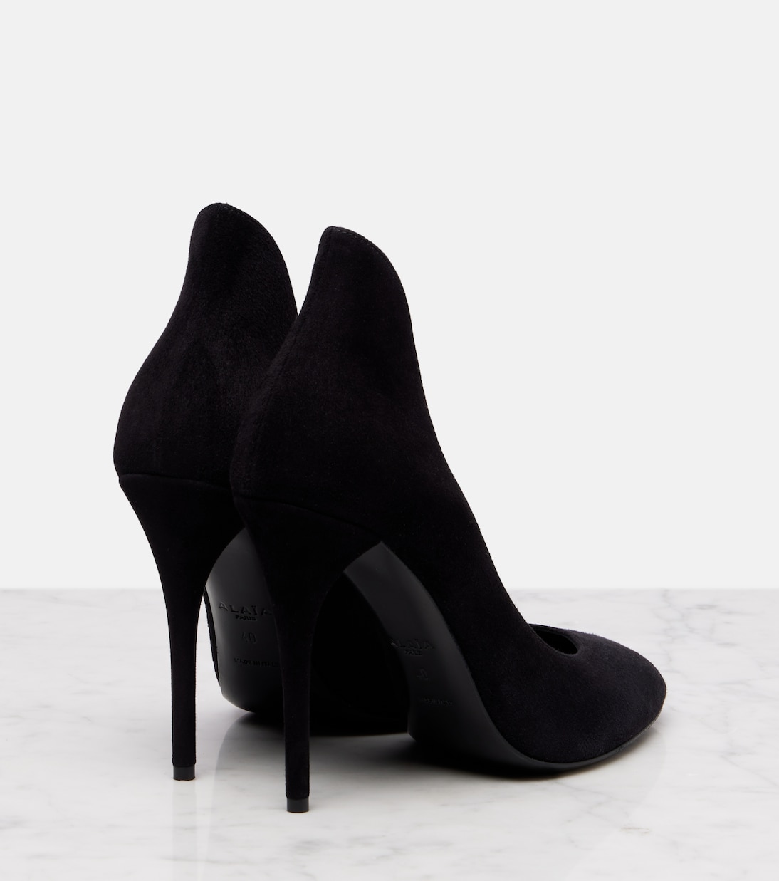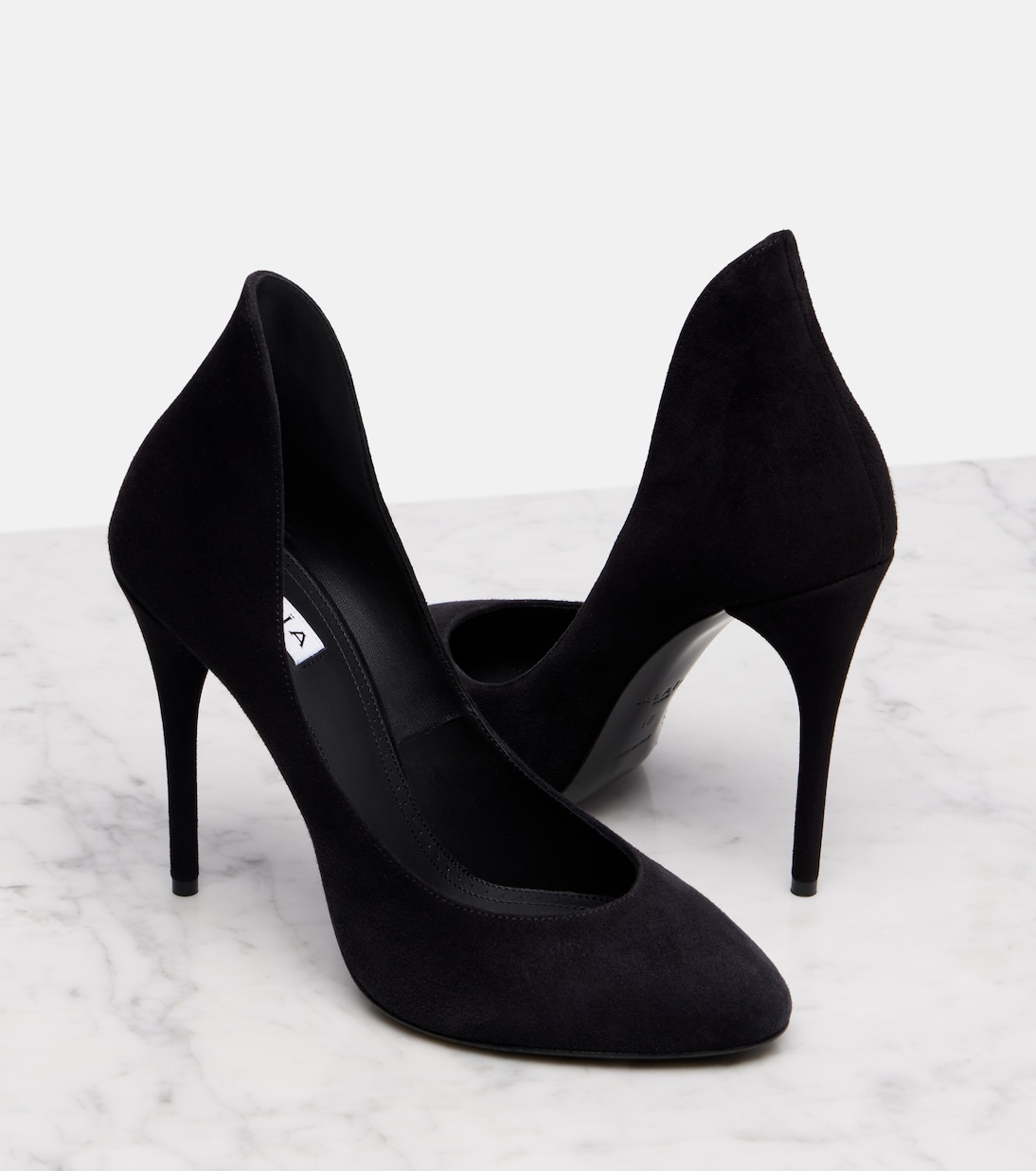 Выходите на улицу уверенно в туфлях-лодочках Alaïa Decolette. Эти туфли, изготовленные в Италии из замши, на шпильке высотой 110 мм и с высокими накладками, которые визуально удлиняют ногу.