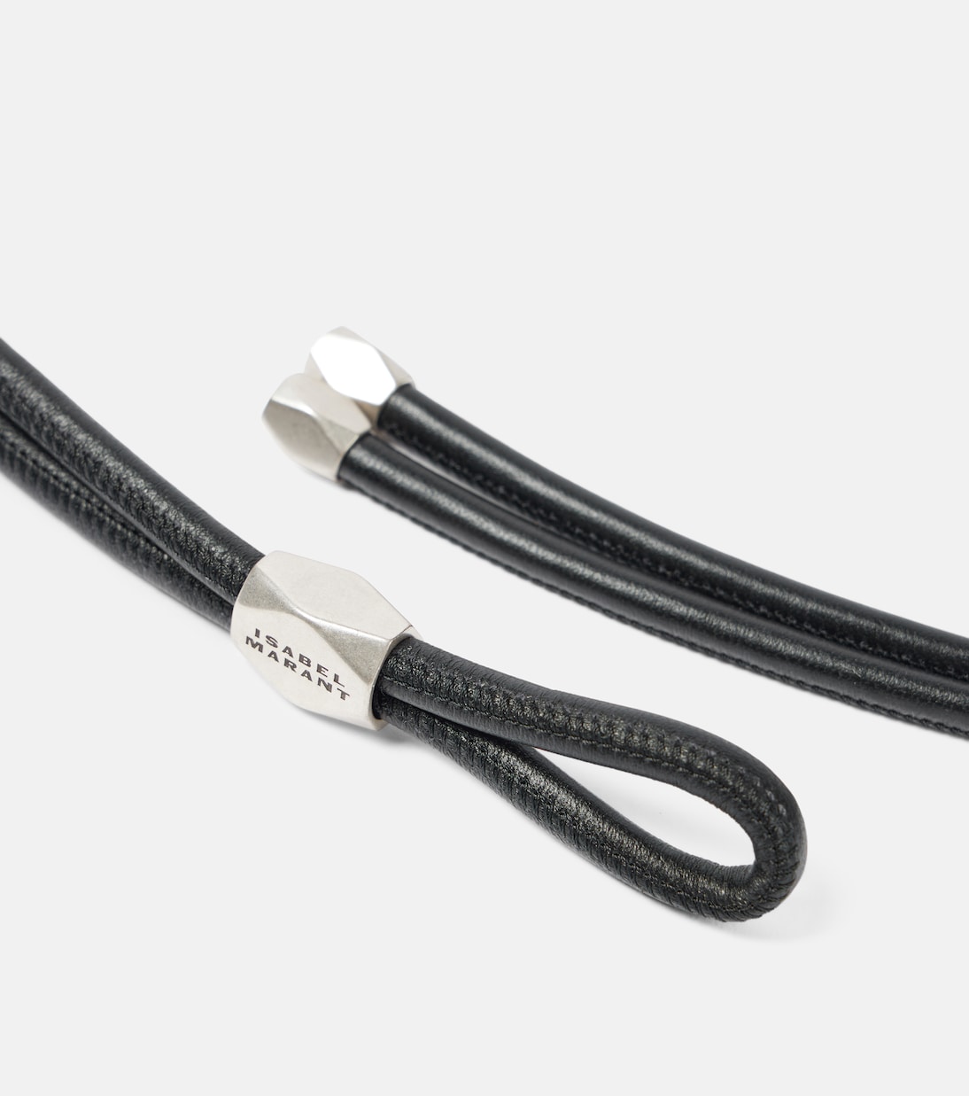 Галстук отлично сочетается с ремнём Silvia от Isabel Marant. Узловатый узор выполнен из мягкой кожи ягнёнка и дополнен гравированной фурнитурой серебристого цвета.