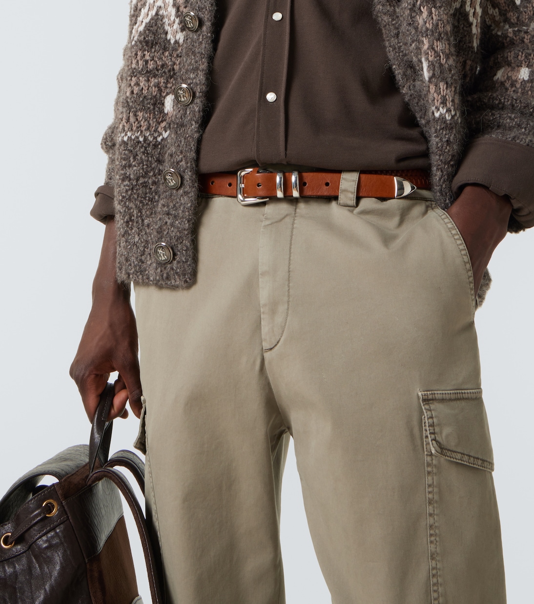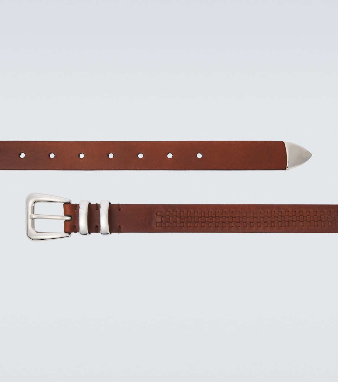 Этот кожаный ремень от Brunello Cucinelli — универсальная вещь, которая сочетается с самыми разными нарядами. Плетёный элемент добавляет текстуру, а серебристая фурнитура — лёгкую изюминку.
