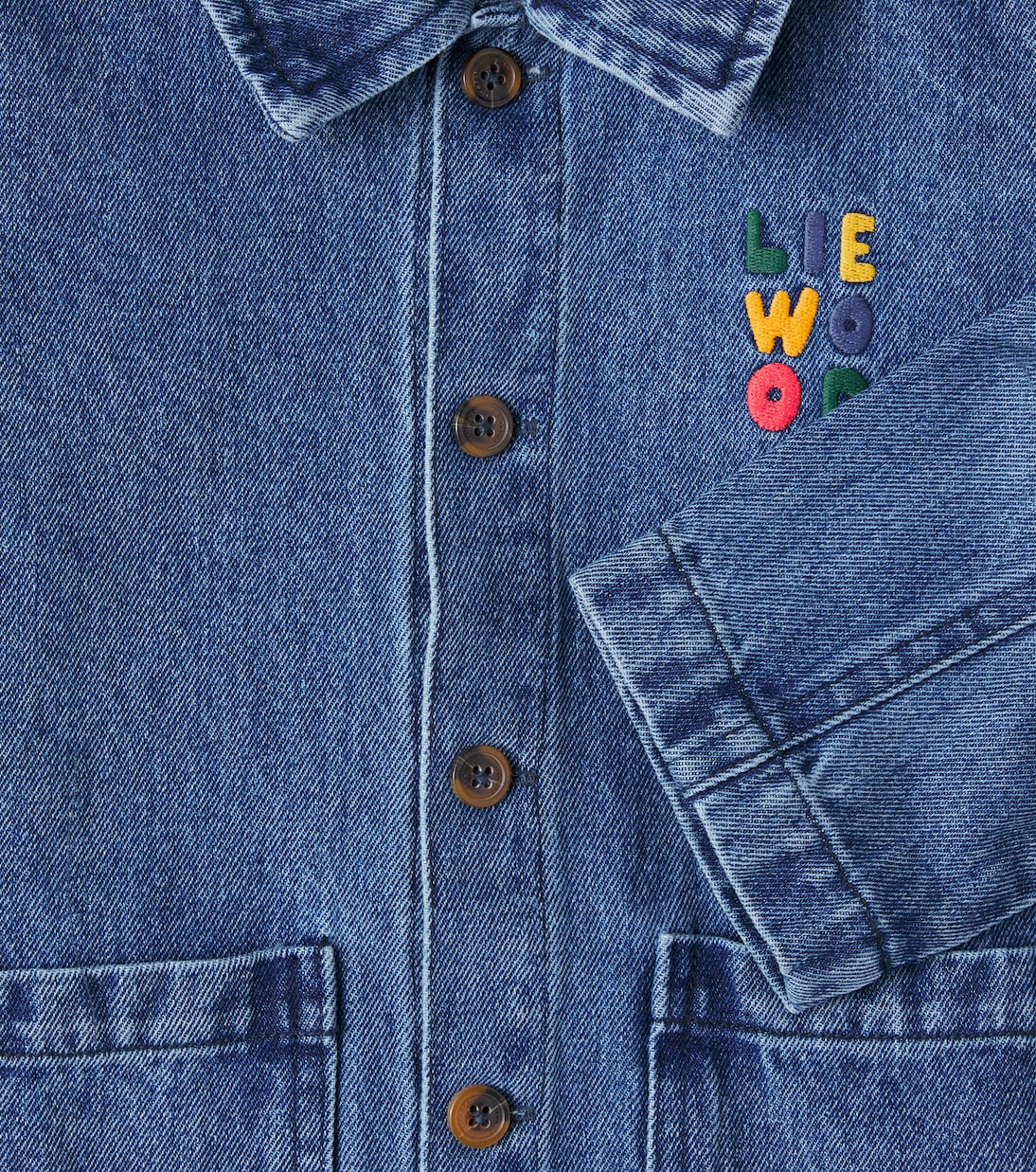 Практичность и долговечность – классические модели Liewood – идеальное воплощение традиций скандинавского дизайна. Рубашка Kinsley на пуговицах, выполненная из структурированного денима, дополнена накладными карманами и очаровательной вышивкой на груди.