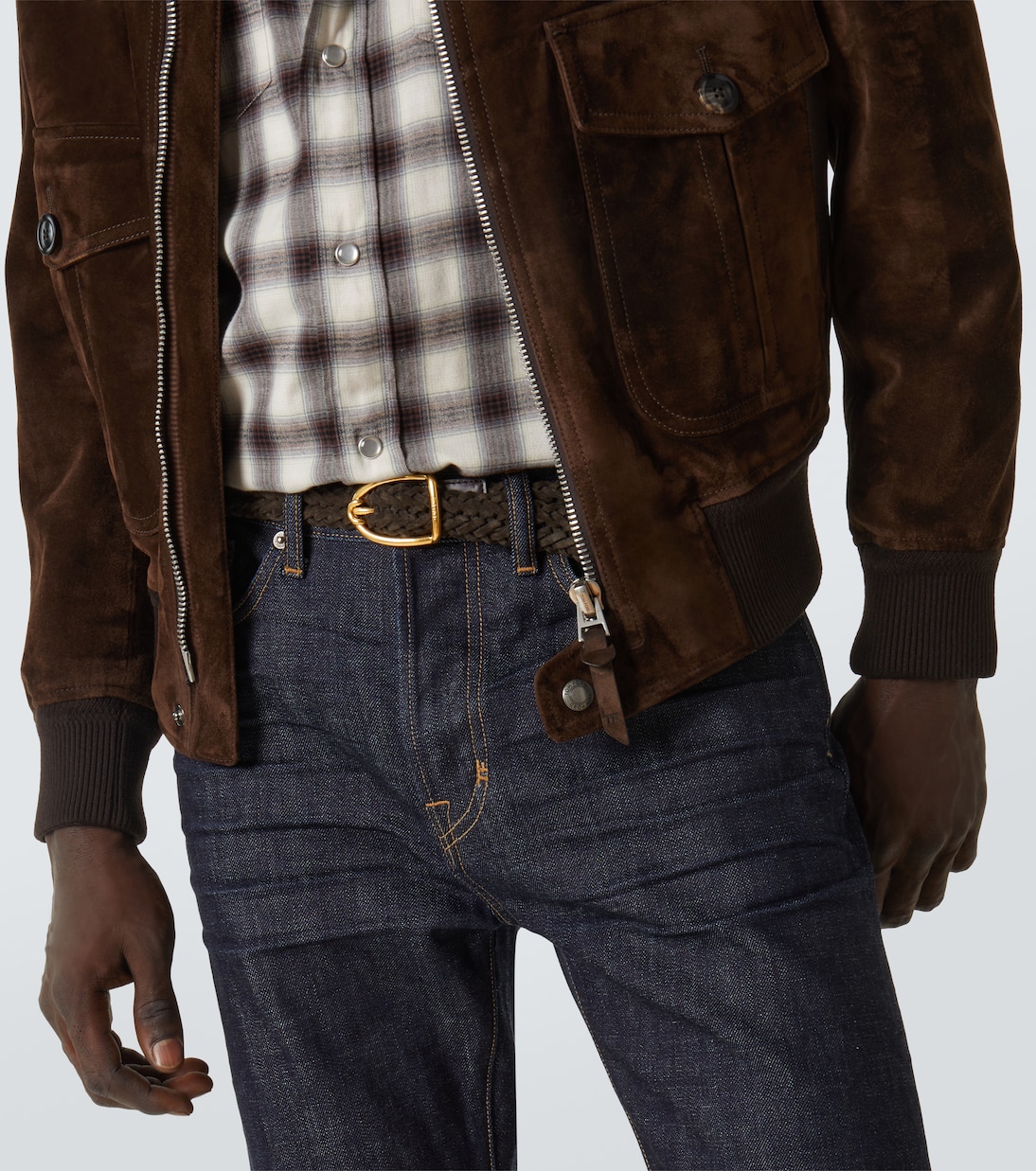 Этот ремень Tom Ford демонстрирует тщательное внимание к деталям и изысканный стиль. Его уникальный плетеный дизайн выполнен из мягкой, как масло, замши и дополнен золотистой пряжкой.