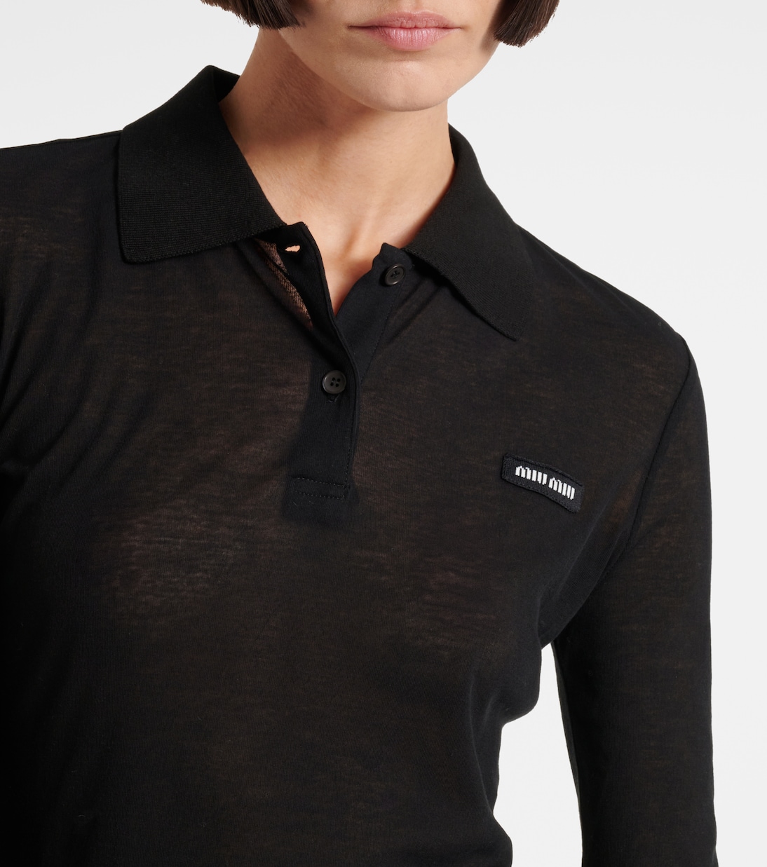 Хлопковое джерси поло-платье с рубчиками Miu Miu, черный