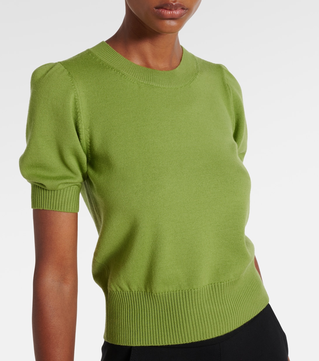 Этот свитер с короткими рукавами от Oscar de la Renta связан из чистой натуральной шерсти. Сделано в Италии. Модель имеет круглый вырез горловины и ребристую отделку по рукавам и подолу.