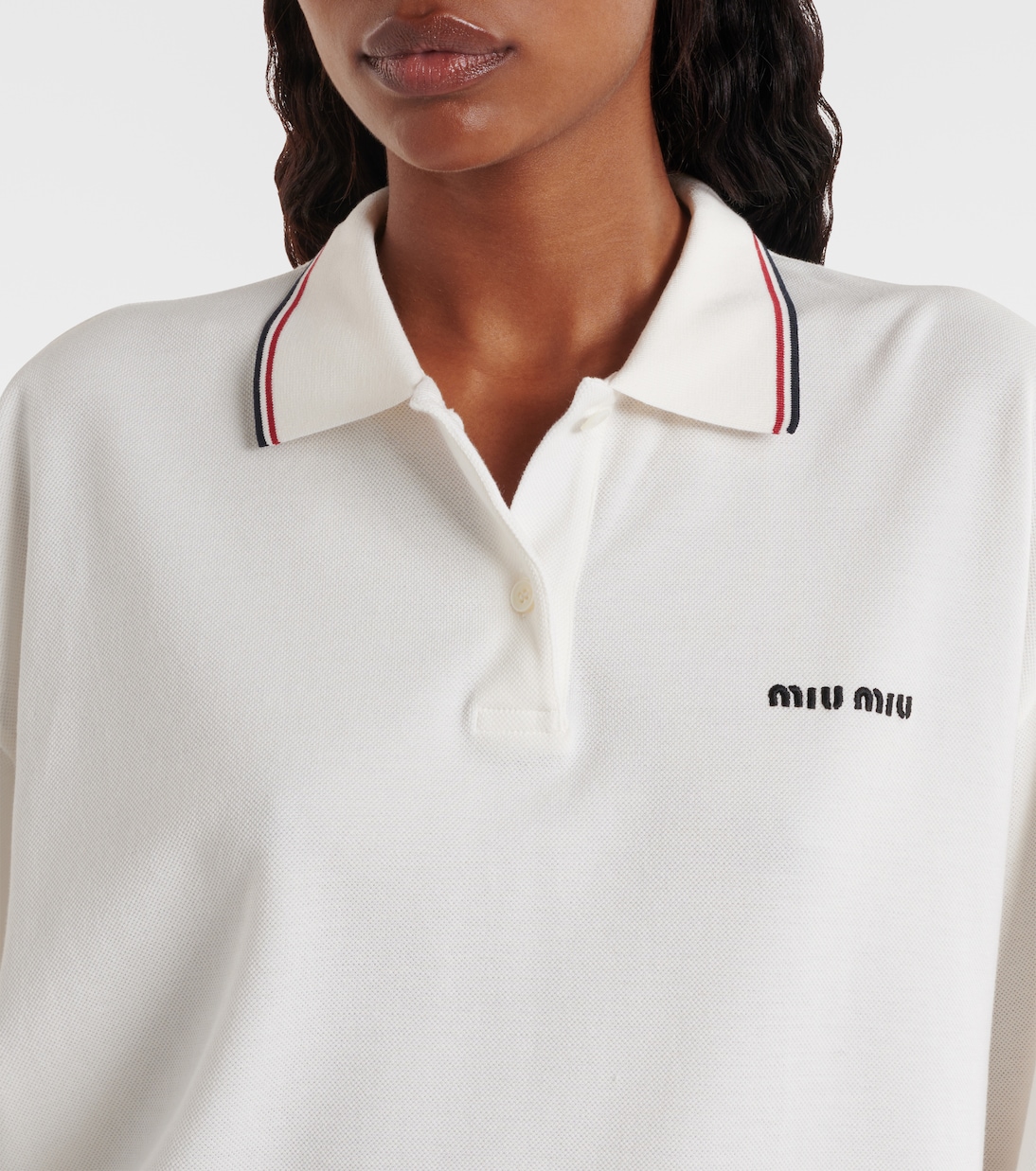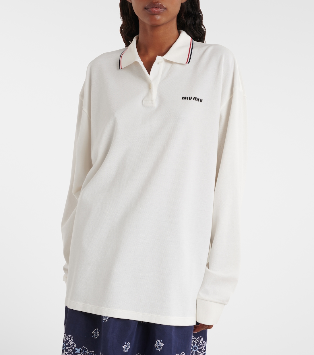 Этот свитер-поло от Miu Miu — одновременно изысканный и повседневный. Этот классический фасон, связанный из чистого хлопка, отличается свободным силуэтом и дополнен вышитым логотипом бренда на груди.