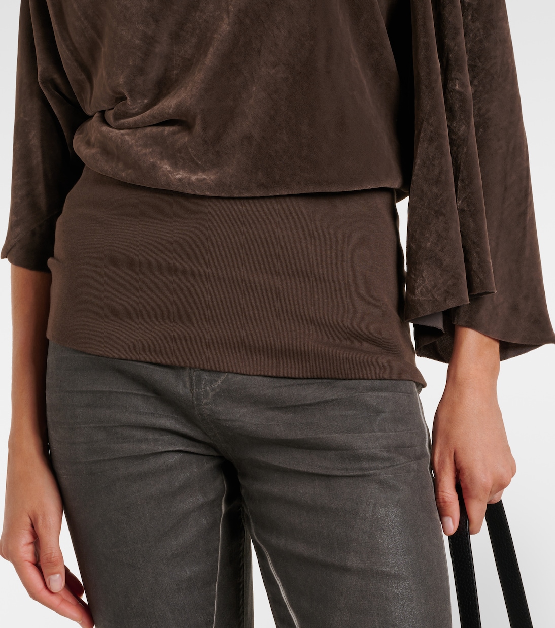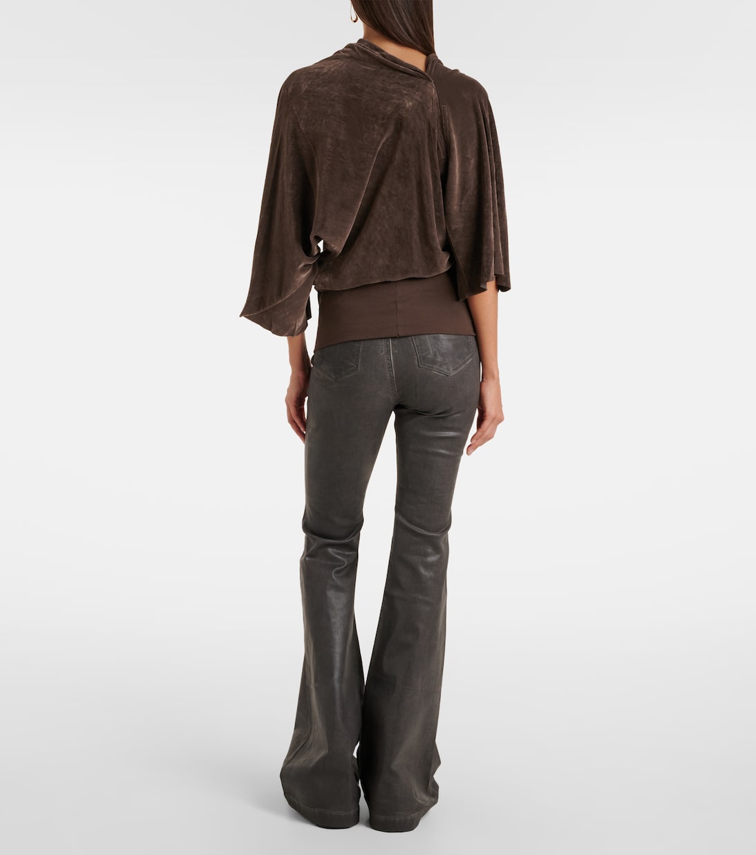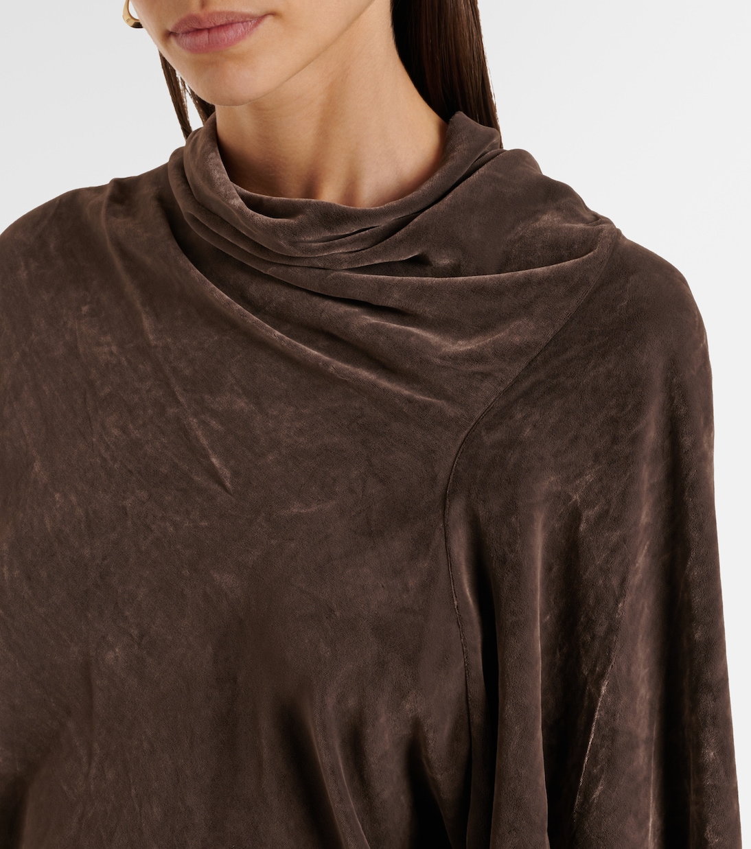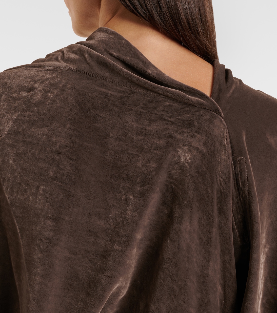 Этот топ от Rick Owens, выполненный из крепа средней плотности, с драпированным воротником и асимметричным разрезом сзади. Модель дополнена рукавами-воронками и сборками на талии.