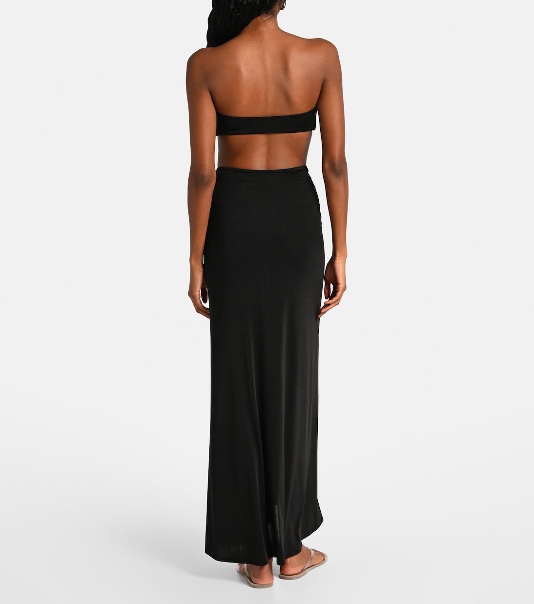 Дизайн Skyla от Jade Swim стирает грань между купальником и повседневной одеждой. Эта макси-юбка из мягкого трикотажа дополнена V-образной фурнитурой, которая создает скульптурный пояс и лёгкие сборки.