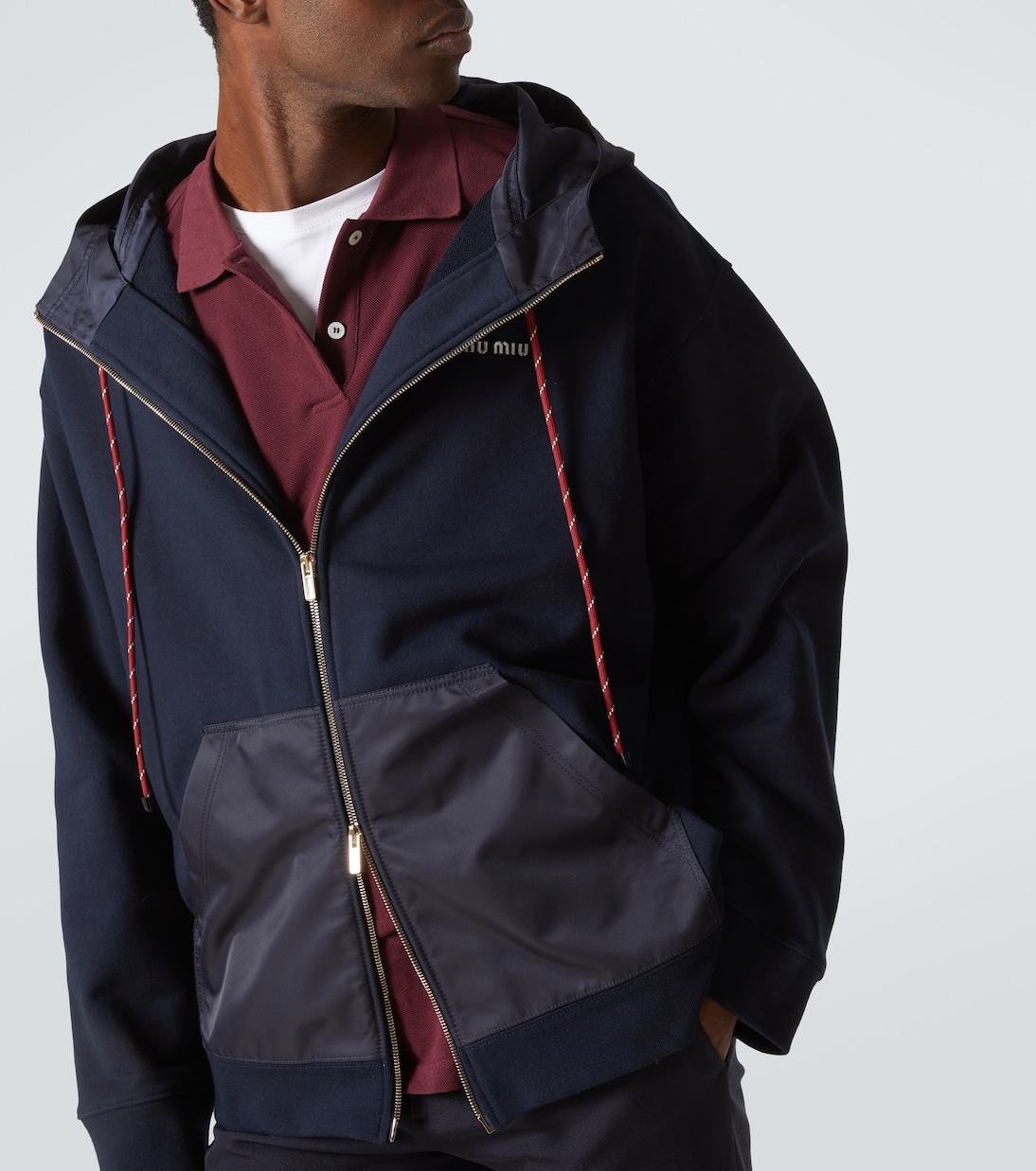 Хлопковая худи на молнии Miu Miu, синий