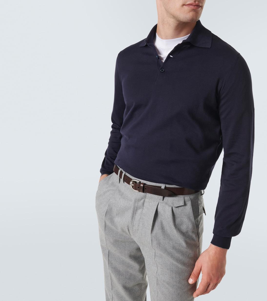 Хлопковый поло свитер Brunello Cucinelli, темно-синий