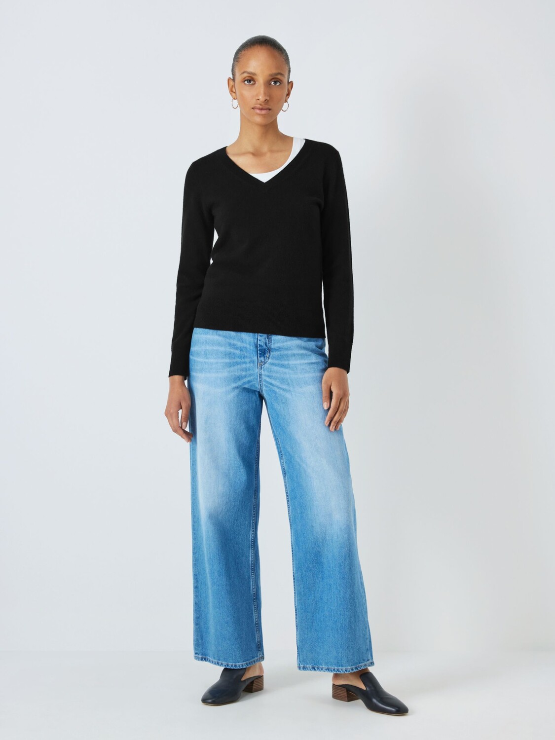 Джемпер из легкого кашемира с v-образным вырезом John Lewis, черный