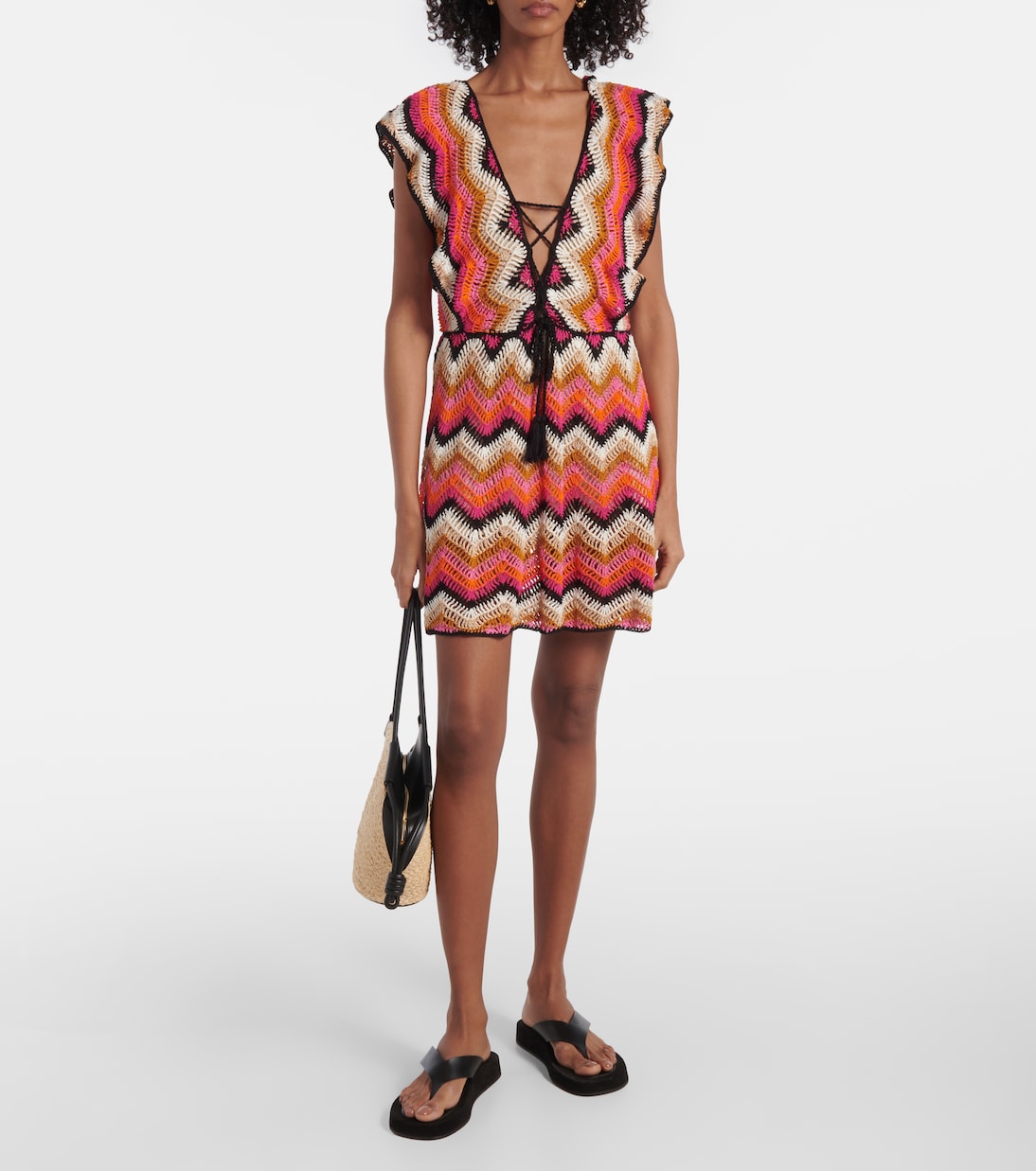 Мелисса хлопковое мини-платье крючком Anna Kosturova, Multi Stripes