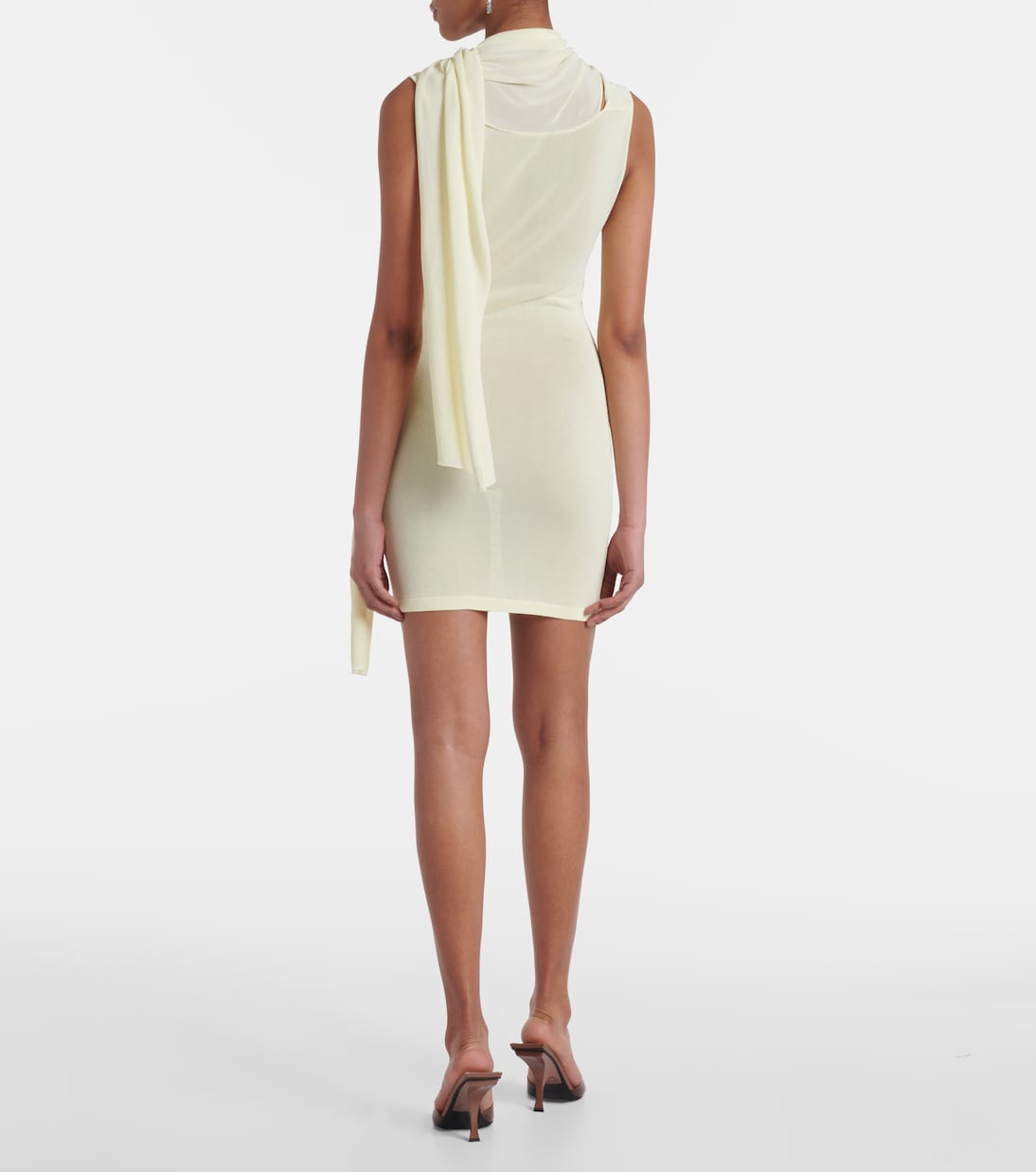 Разработанный в Лос-Анджелесе, бренд Aya Muse зарекомендовал себя как место, где можно найти стильные базовые вещи и вдохновляющие вечерние наряды. Это мини-платье с драпировкой имеет приталенный силуэт, воротник-хомут и элегантный шарф, ниспадающий каскадом.
