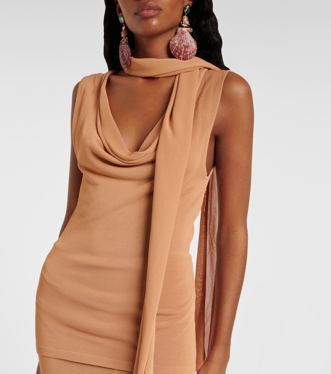 Разработанный в Лос-Анджелесе, бренд Aya Muse зарекомендовал себя как место, где можно найти стильные базовые вещи и вдохновляющие вечерние наряды. Этот драпированный топ отличается привлекательным вырезом-хомут, приталенным силуэтом и элегантным шарфом, ниспадающим каскадом.