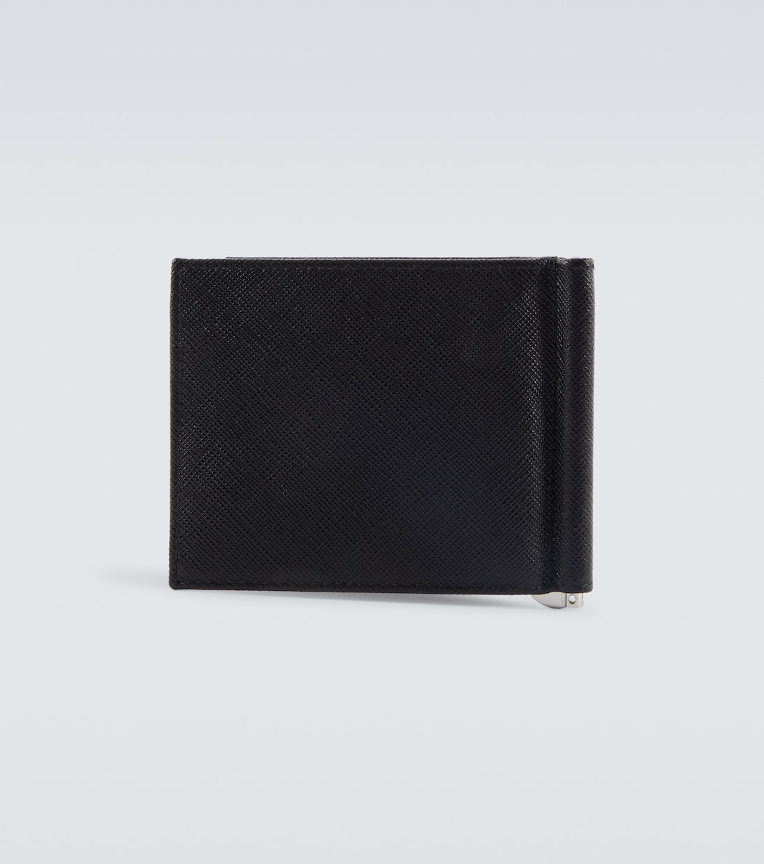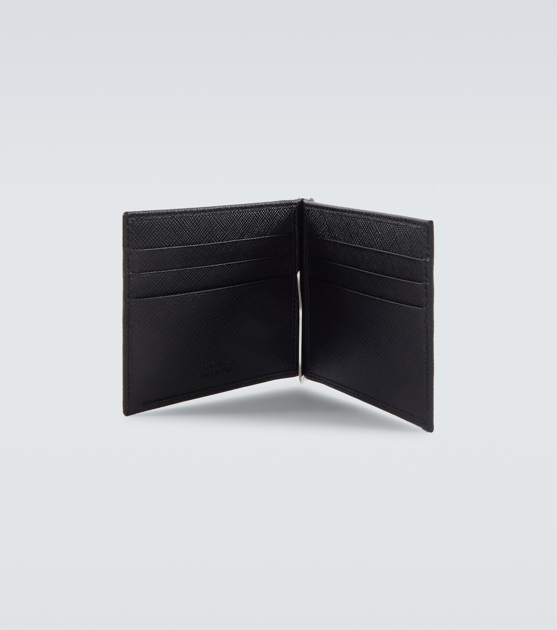 Этот черный кожаный аксессуар от Prada, изготовленный в Италии из телячьей кожи, имеет складную конструкцию с логотипом бренда на одном углу и несколькими внутренними отделениями для карт.