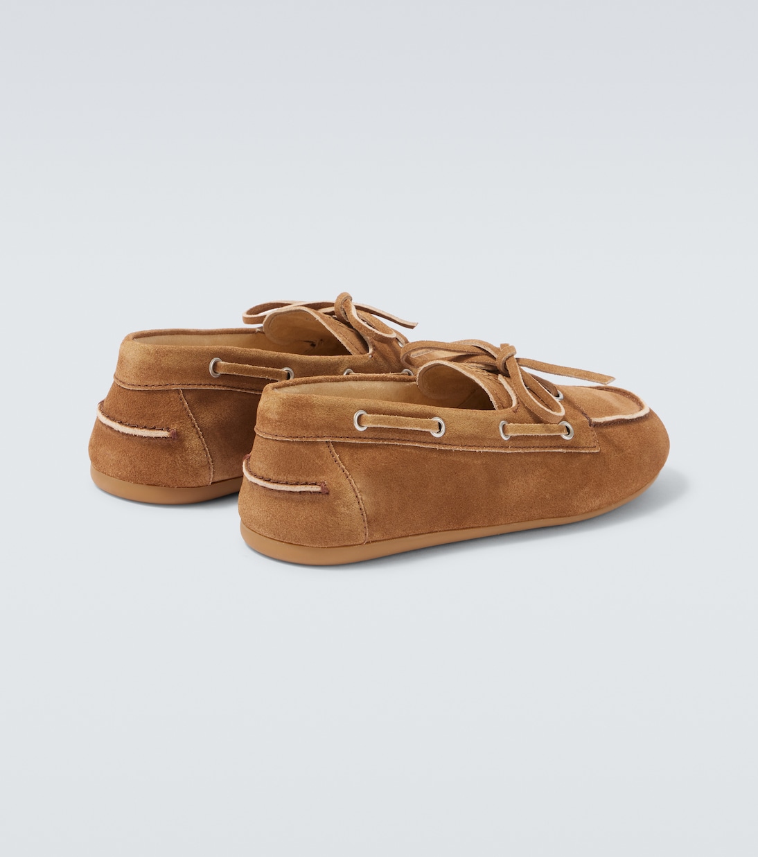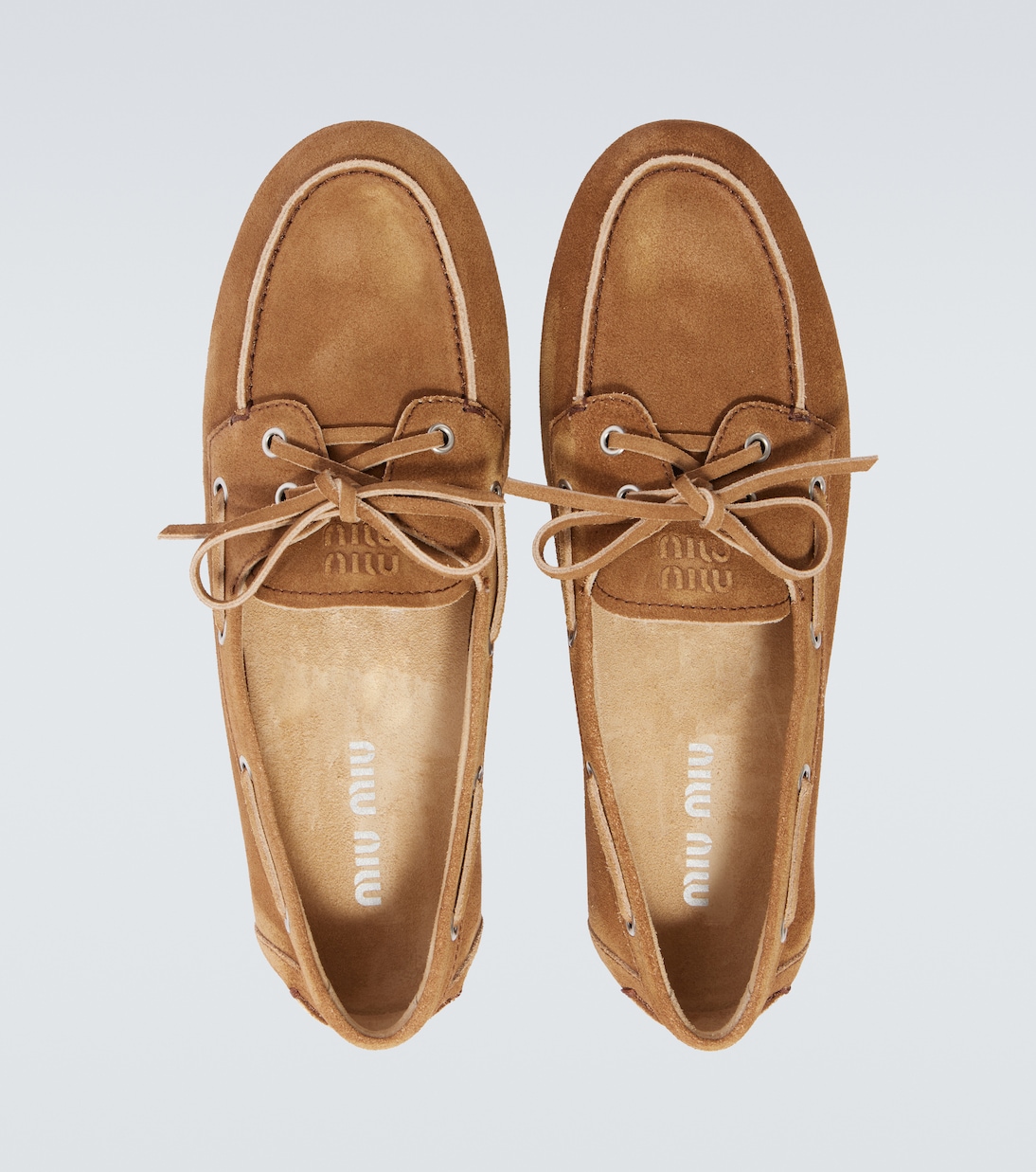 Раскованность, беззаботность и нарочито бунтарский дух — вот отличительные черты Miu Miu от Миуччи Прады. Эти туфли-лодочки из замши без подкладки с искусно выцветшим дизайном.