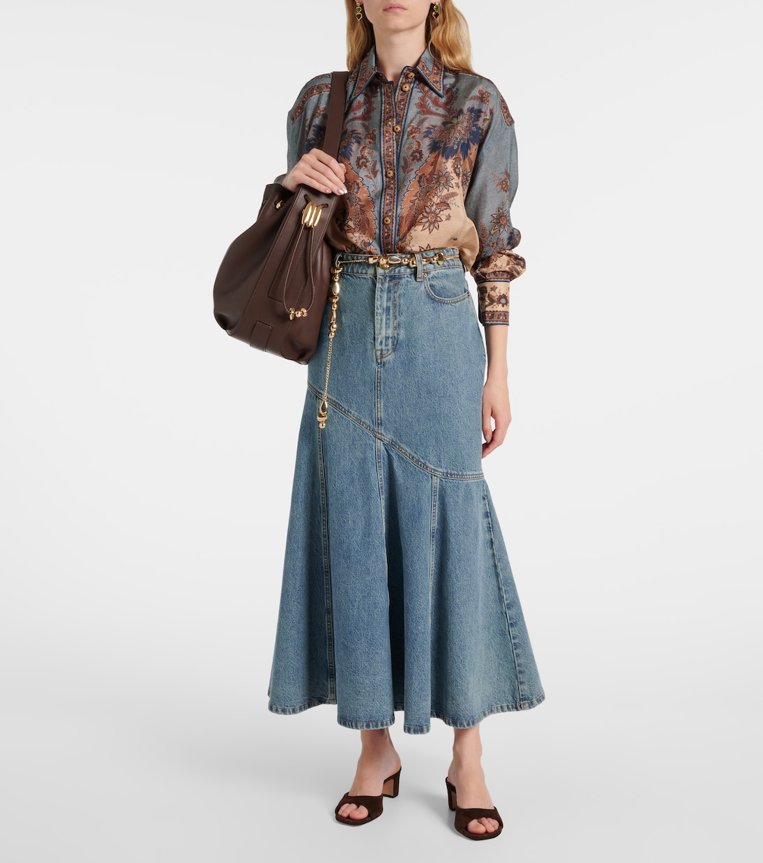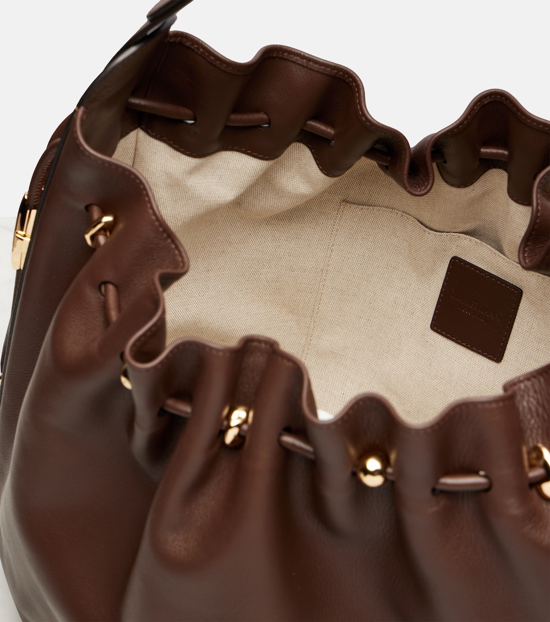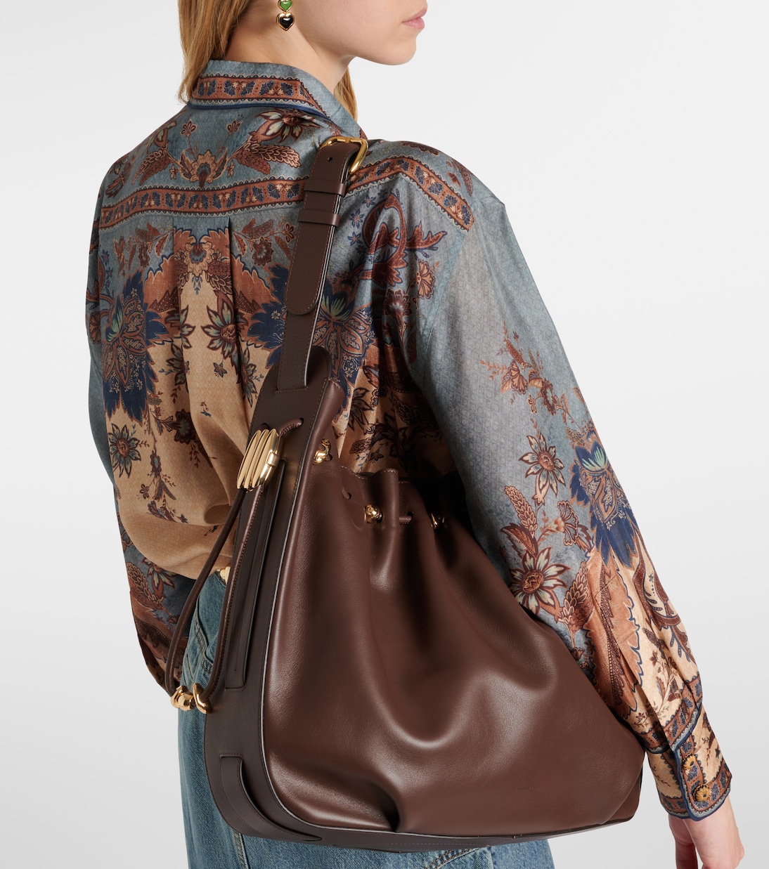 Эфирность и романтика — это лишь поверхностное описание изделия Zimmermann. Сумка-ведро Halcyon, изготовленная в Италии из коричневой кожи, представлена в большом размере и дополнена золотистой фурнитурой.