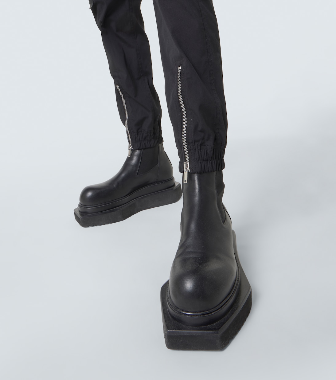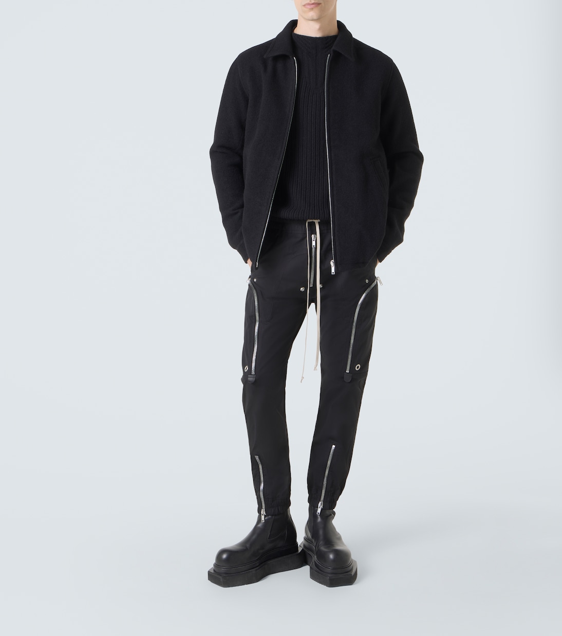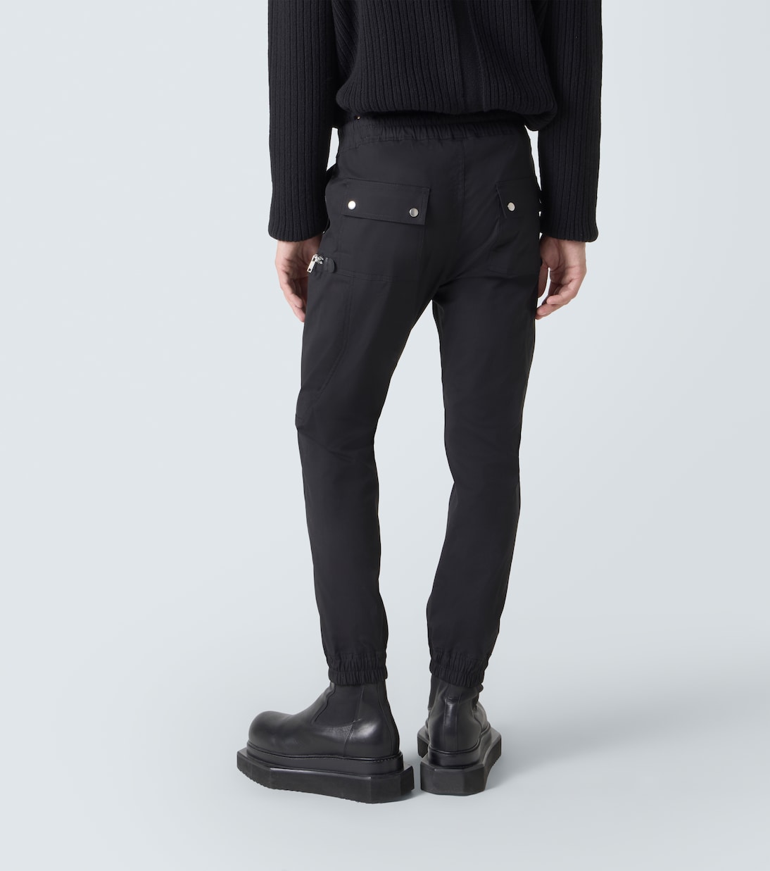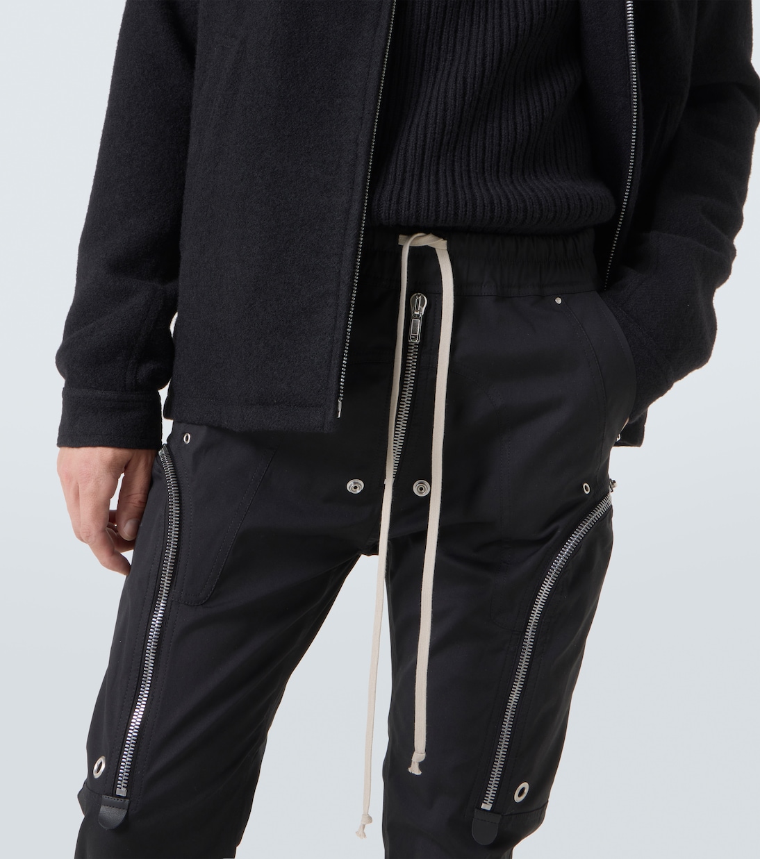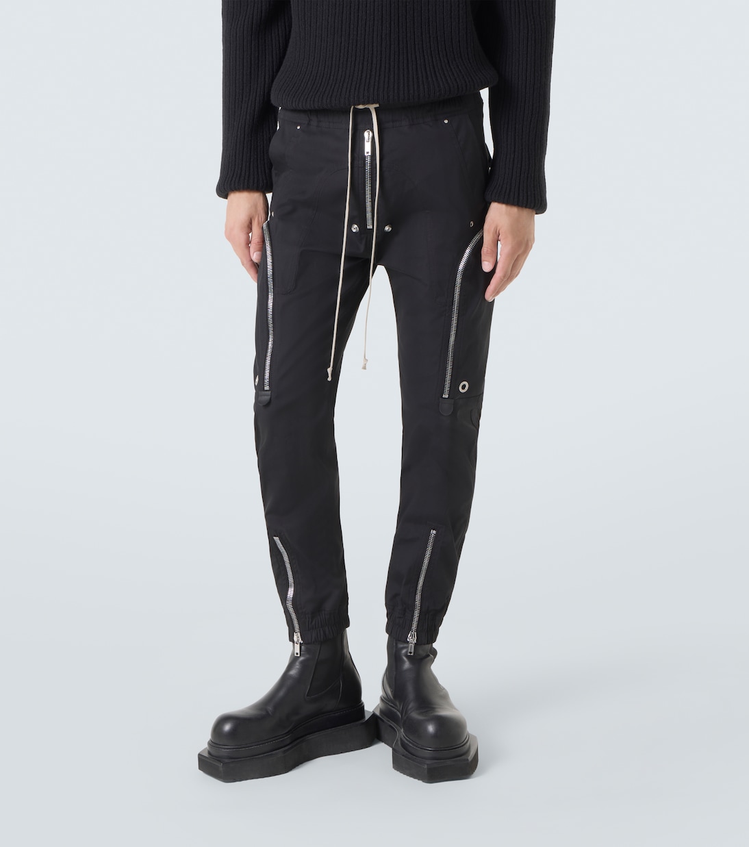 Рик Оуэнс, метко прозванный «Властелином тьмы», привносит готические и индустриальные мотивы в авангардный дизайн. Брюки-карго Bauhaus, изготовленные из хлопковой смеси, имеют два округлых кармана на молнии, заклёпки и кулиску на талии.