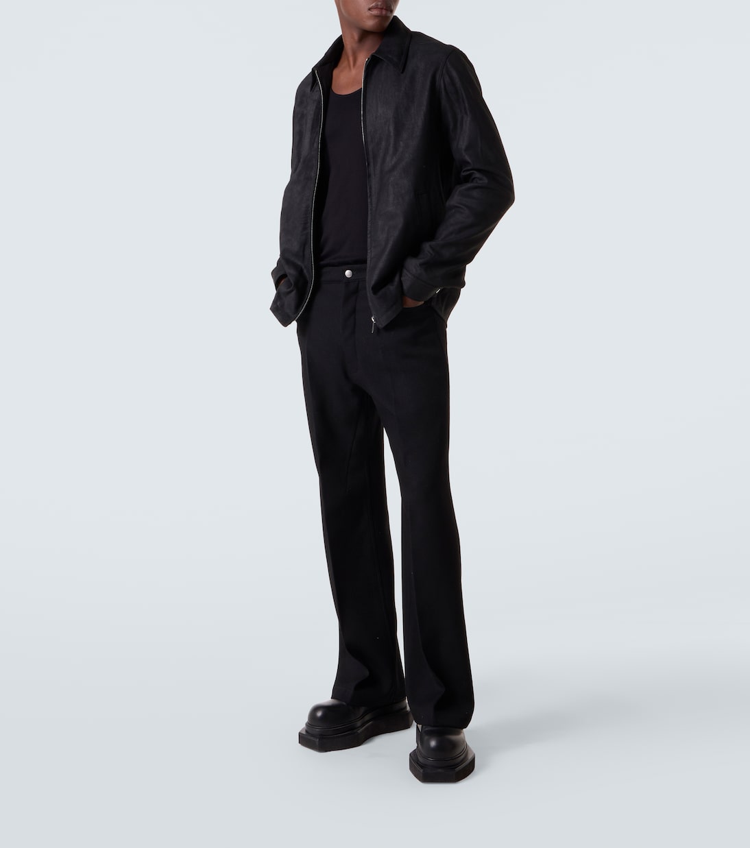 Рик Оуэнс, метко прозванный «Властелином тьмы», привносит готические и индустриальные мотивы в авангардный дизайн. Куртка Brad минималистичного силуэта выполнена из замши, обработанной воском для придания ей лёгкого блеска.