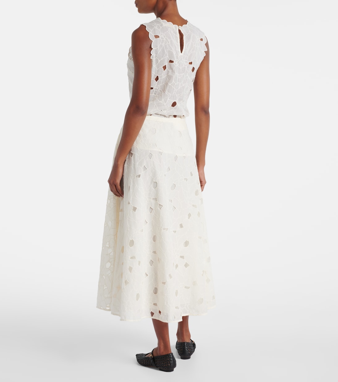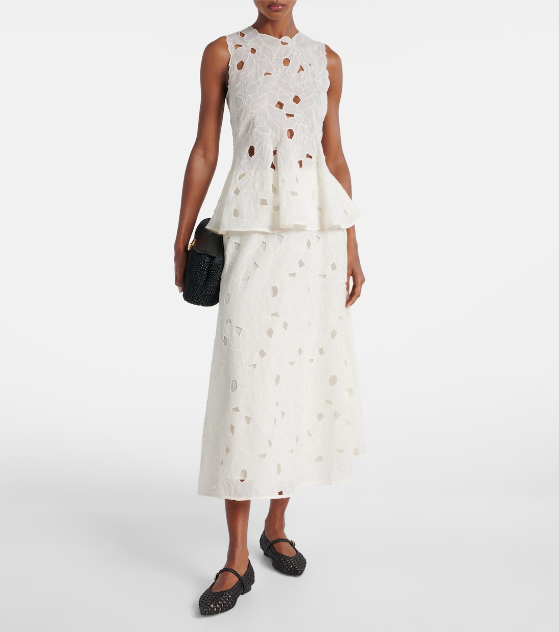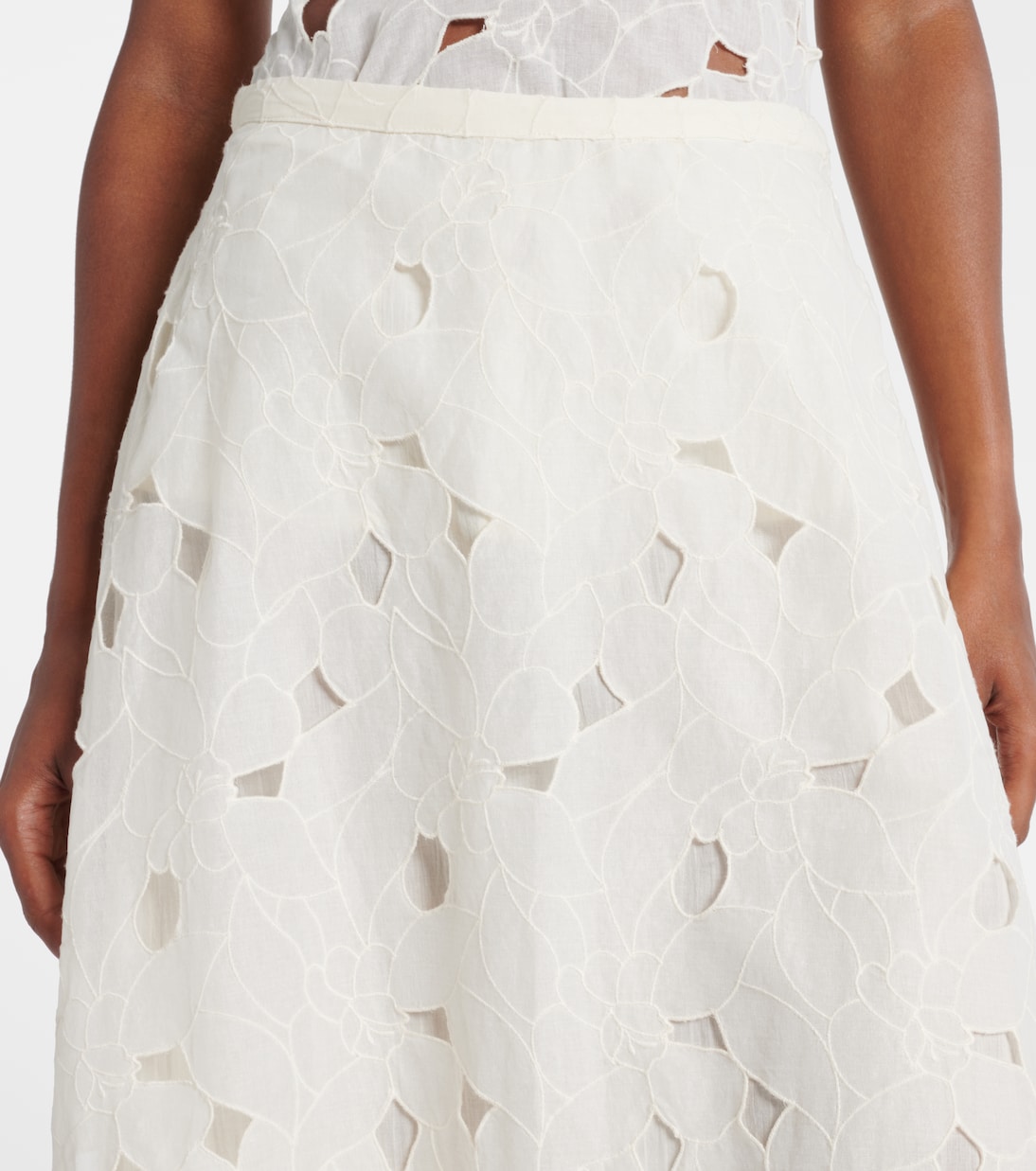 Юбка макси Caro от Ulla Johnson украшена полупрозрачными полевыми цветами, вышитыми на основе из хлопковой органзы. Свободный А-силуэт с высокой линией талии и подкладкой для удобства ношения.