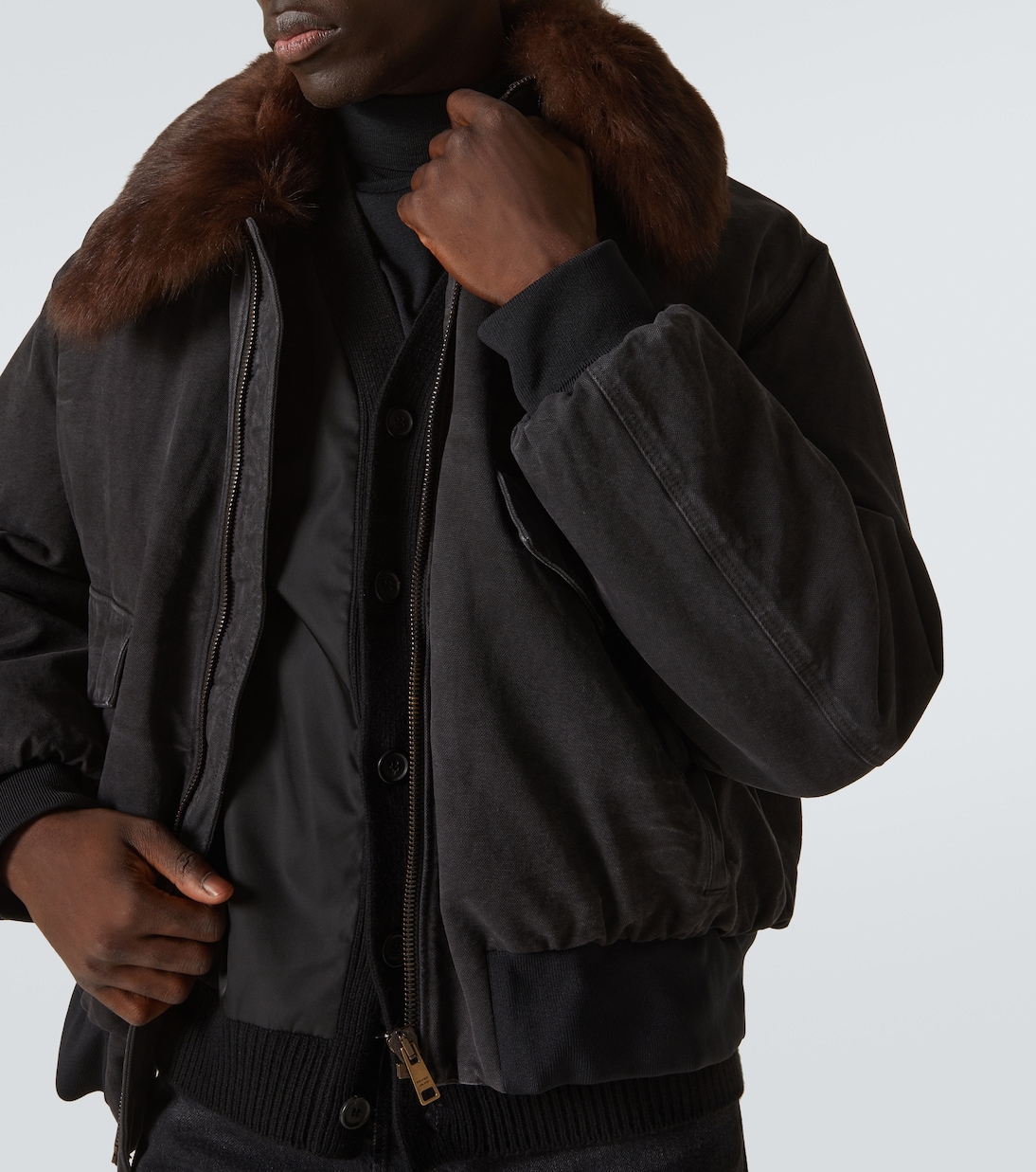 Бомбер из хлопка с отделкой из овчины Prada, черный