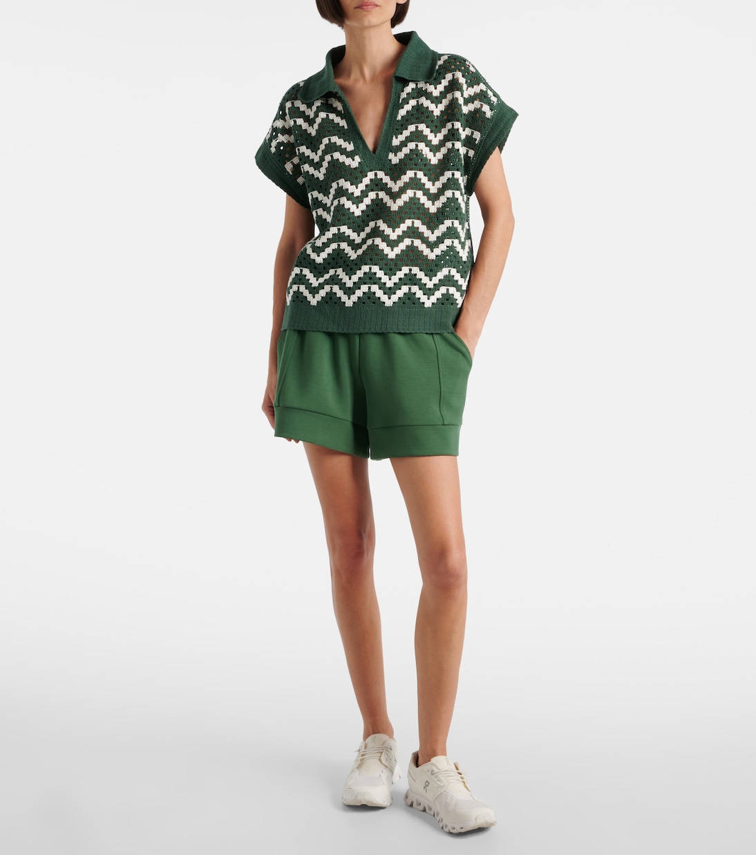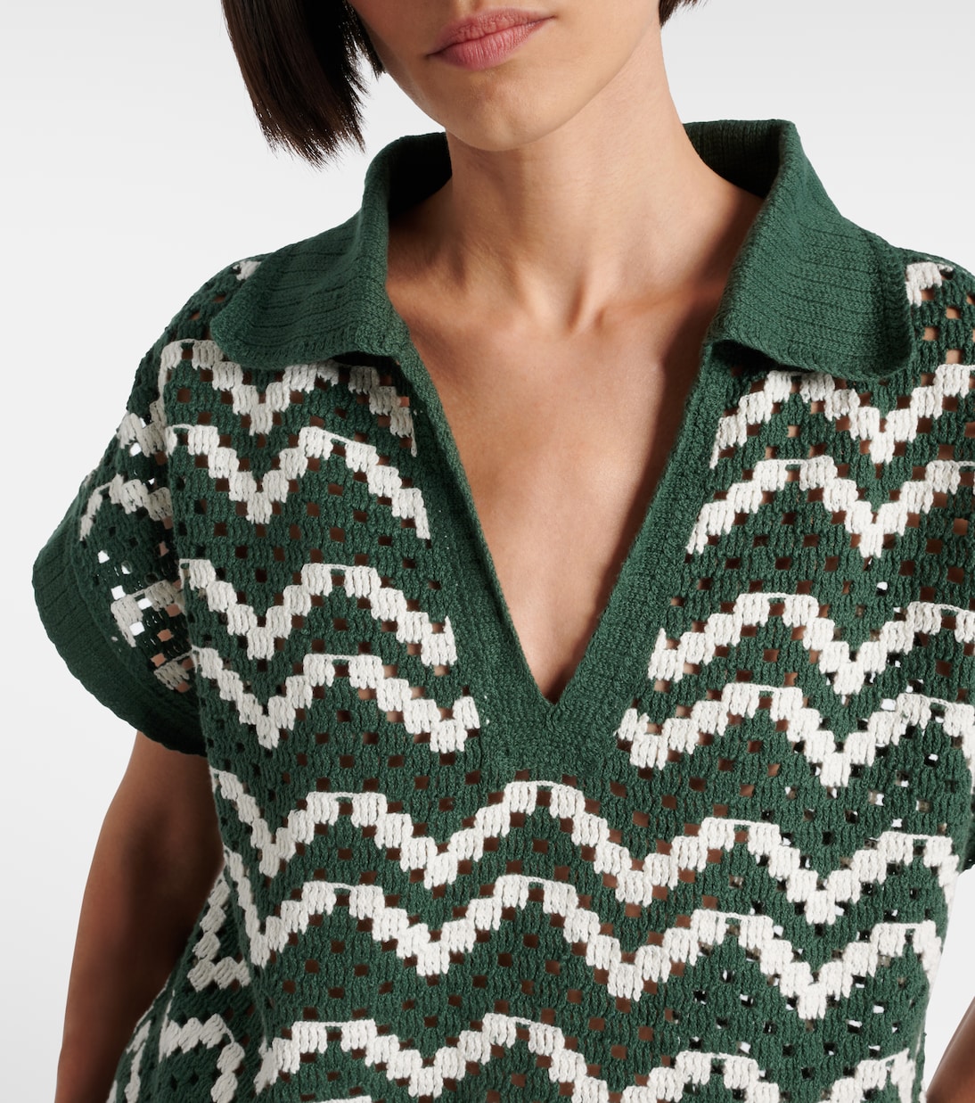 Рубашка-поло Joelle от Varley, выполненная из хлопка с отделкой крючком, сочетает в себе комфорт и повседневную элегантность. Этот узорчатый дизайн отличается элегантным воротником-поло, V-образным вырезом и контрастными манжетами и подолом.