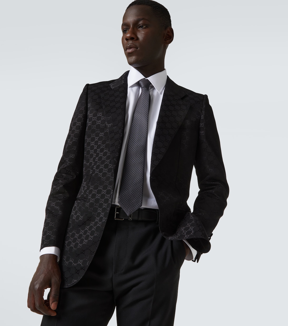 Дополните официальные ансамбли такими яркими аксессуарами, как этот галстук Gucci. Эта модель, представляющая собой свежую интерпретацию исторического мотива монограммы дома, выполнена из серого шёлкового жаккарда GG.