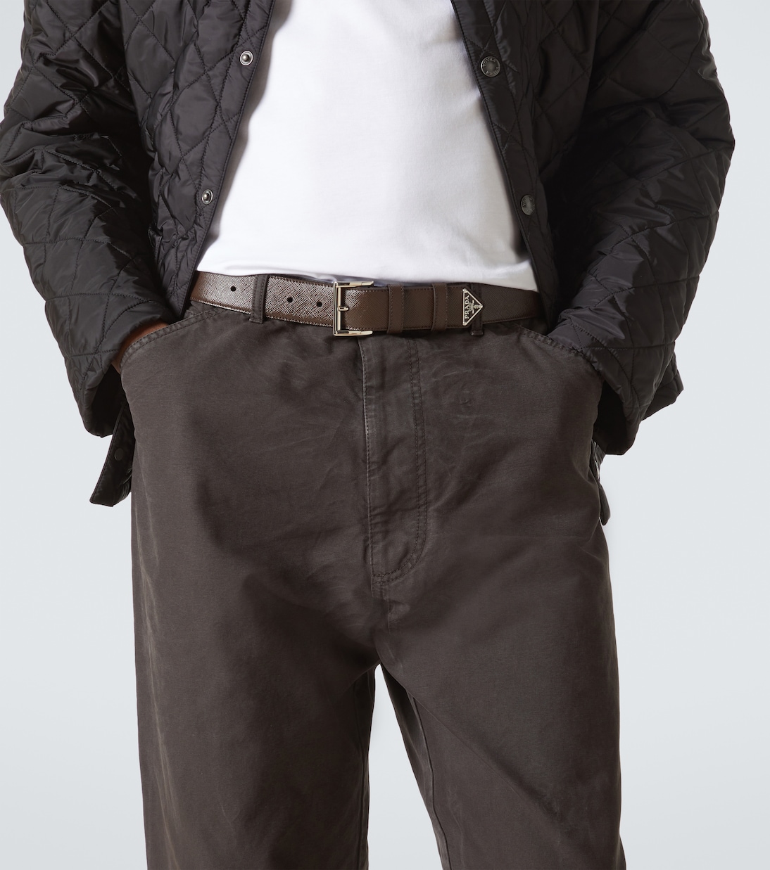 Дополните свои образы классическими изделиями из кожи, например, этим кожаным ремнём. Использование Prada кожи Saffiano с перекрёстной фактурой восходит к Марио Праде, который ценил её изысканность и долговечность.