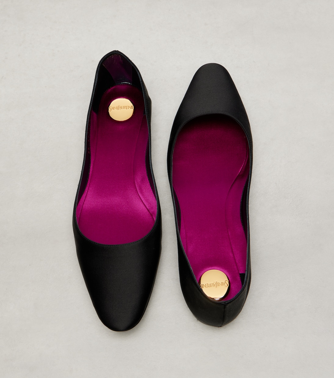 С момента своего создания в 1961 году бренд Saint Laurent пользовался огромной популярностью благодаря своей элегантной парижской эстетике. Балетки Lou, изготовленные из блестящего атласного крепа, отличаются низким вырезом на союзке и гравированными металлическими пластинами на стельках.