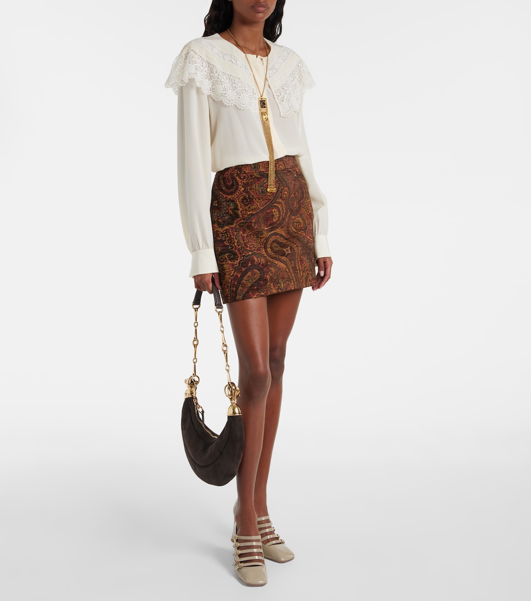Жаккардовый узор пейсли сделает эту мини-юбку Chloé достойным дополнением к вашему гардеробу. Модель застегивается на молнию сбоку и дополнена золотистой пуговицей для придания ей блеска.