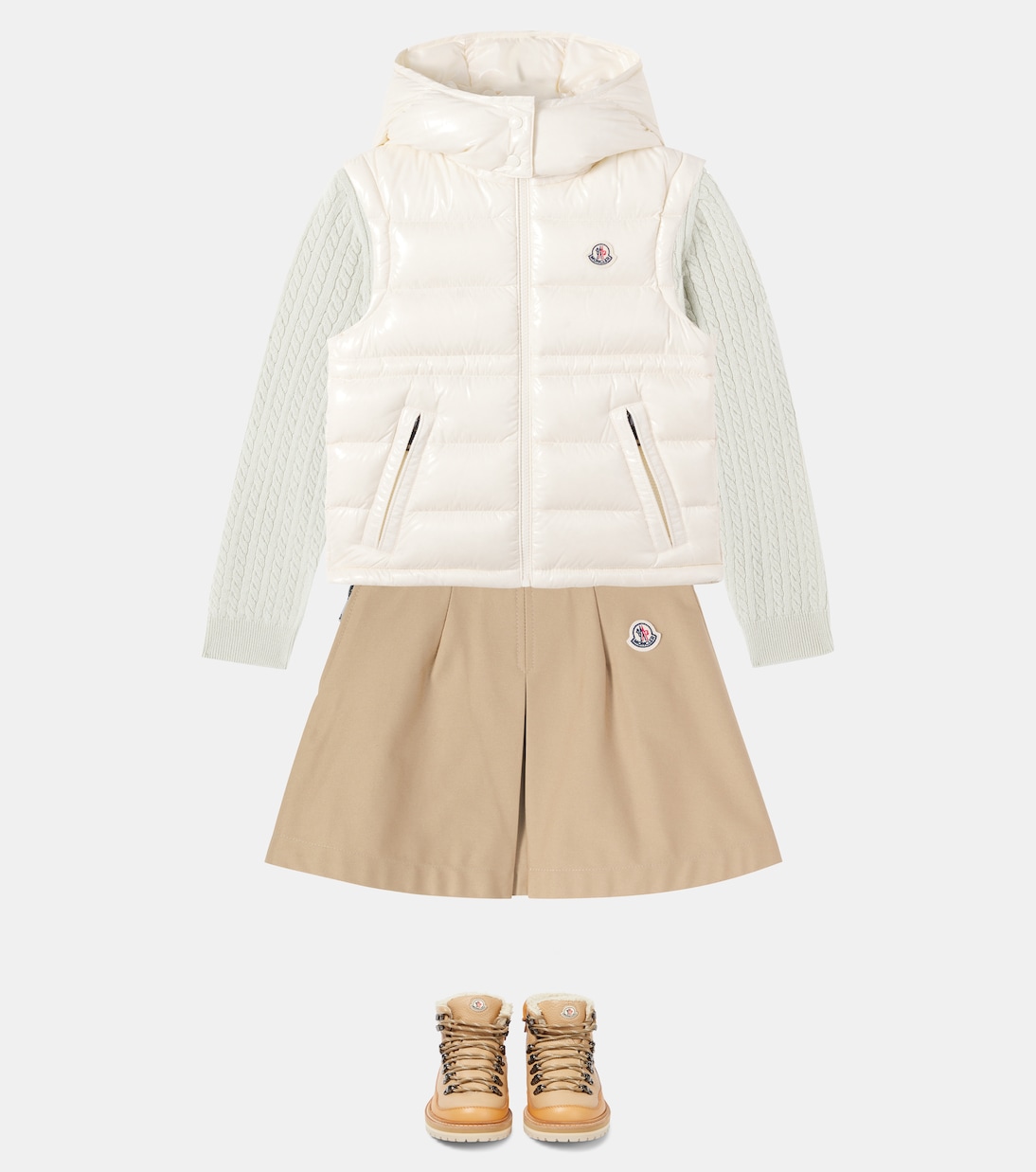 Жилет Ania от Moncler Enfant наполнен пухом и имеет съемный капюшон для создания разнообразных образов. Застежка на молнию и кнопки, карманы на молнии и пояс на шнурке.