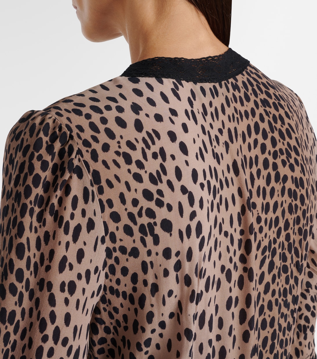 Забудьте о бесконечных поисках скрытых сокровищ! Платья Rixo в винтажном стиле превосходят любые находки на блошином рынке. Платье миди Amina выполнено из крепдешина с леопардовым принтом по всей поверхности и дополнено кружевной отделкой.