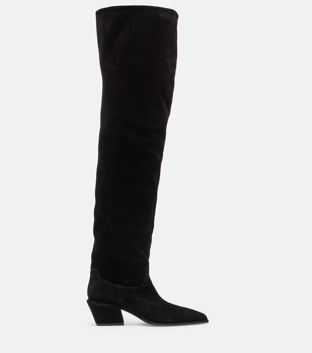 Сапоги Bettina от Paris Texas станут гламурным дополнением к вечернему образу. Модель выше колена выполнена из мягкой замши и отличается острым квадратным носком.