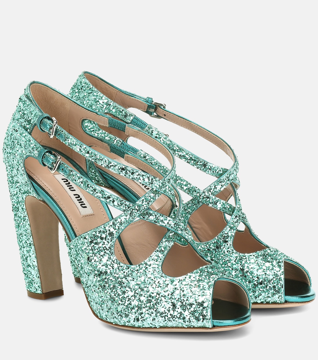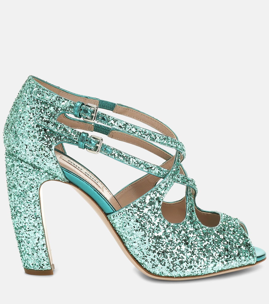 Сверкайте при каждом шаге в этих босоножках от Miu Miu. Открытый носок и перекрещивающиеся ремешки на щиколотке элегантно облегают стопу, а блестящее покрытие сине-зелёного оттенка, который бренд называет «Aqua», придаёт этой паре, созданной в Италии, эффектный вид. Добавьте роскоши в свои вечерние наряды.