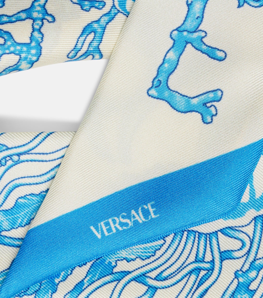 Шёлковый твилловый шарф Underwater Barocco Versace, Eggshell+Bright DV Blue 5K650