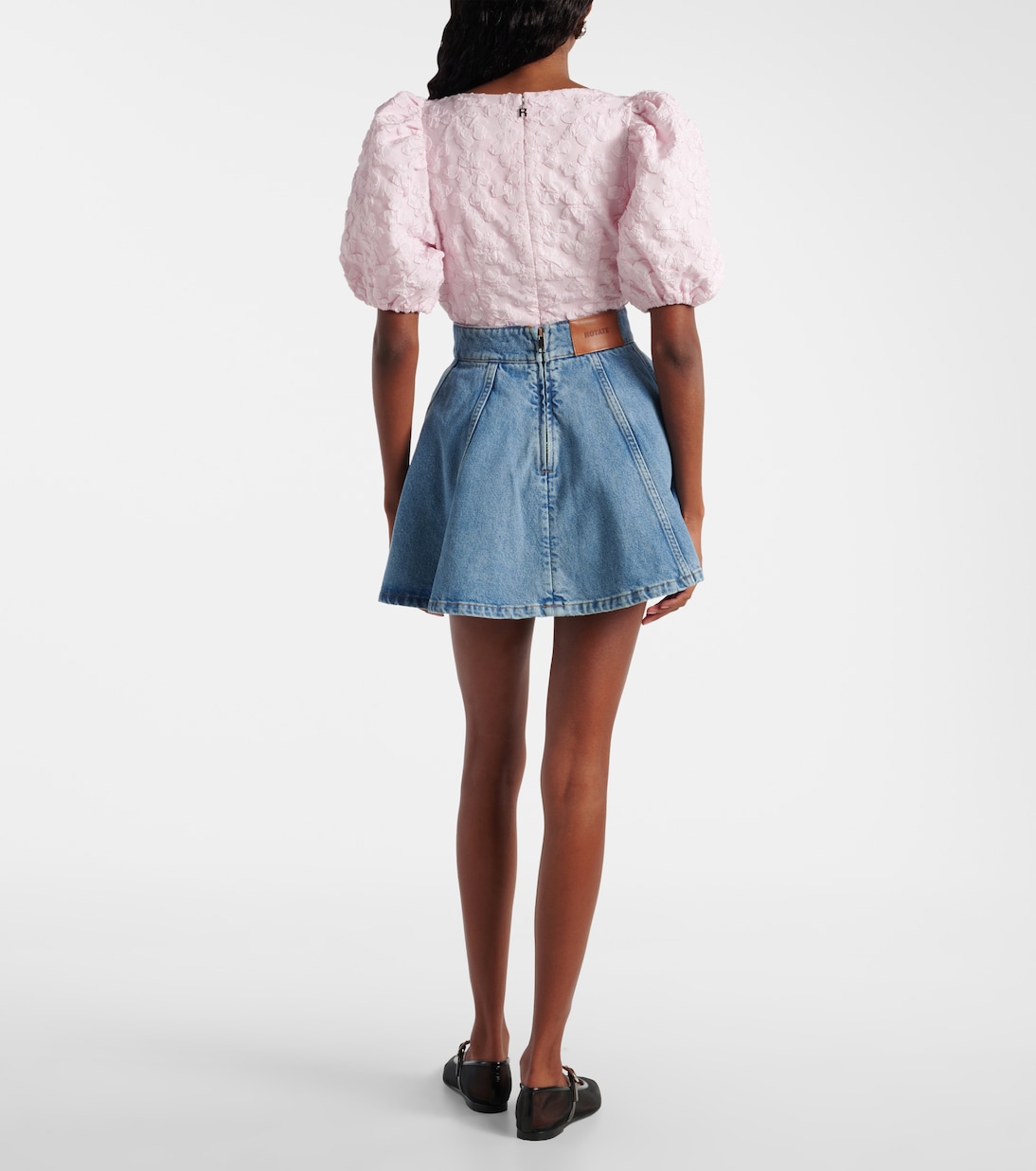 Заполните пробелы в своем выходном гардеробе уникальными и гламурными моделями от Rotate. Эта джинсовая мини-юбка с плиссировкой и эффектом стирки перенесет вас в начало 2000-х.