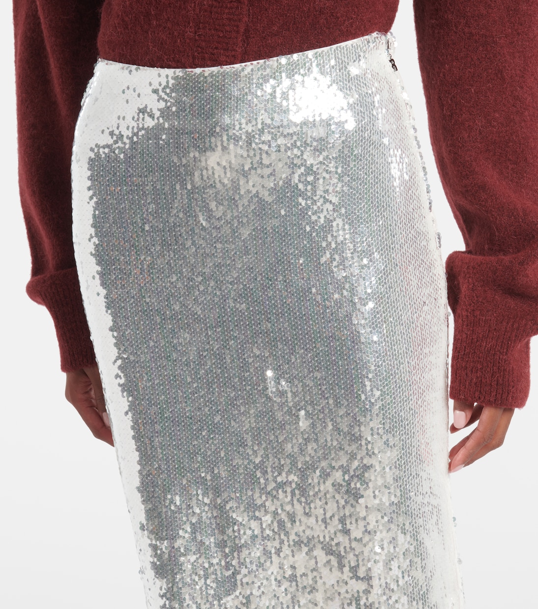 Заполните пробелы в своем выходном гардеробе уникальными и гламурными моделями от Rotate. Эта макси-юбка элегантного приталенного силуэта украшена пайетками по всей поверхности и имеет высокий разрез сзади.