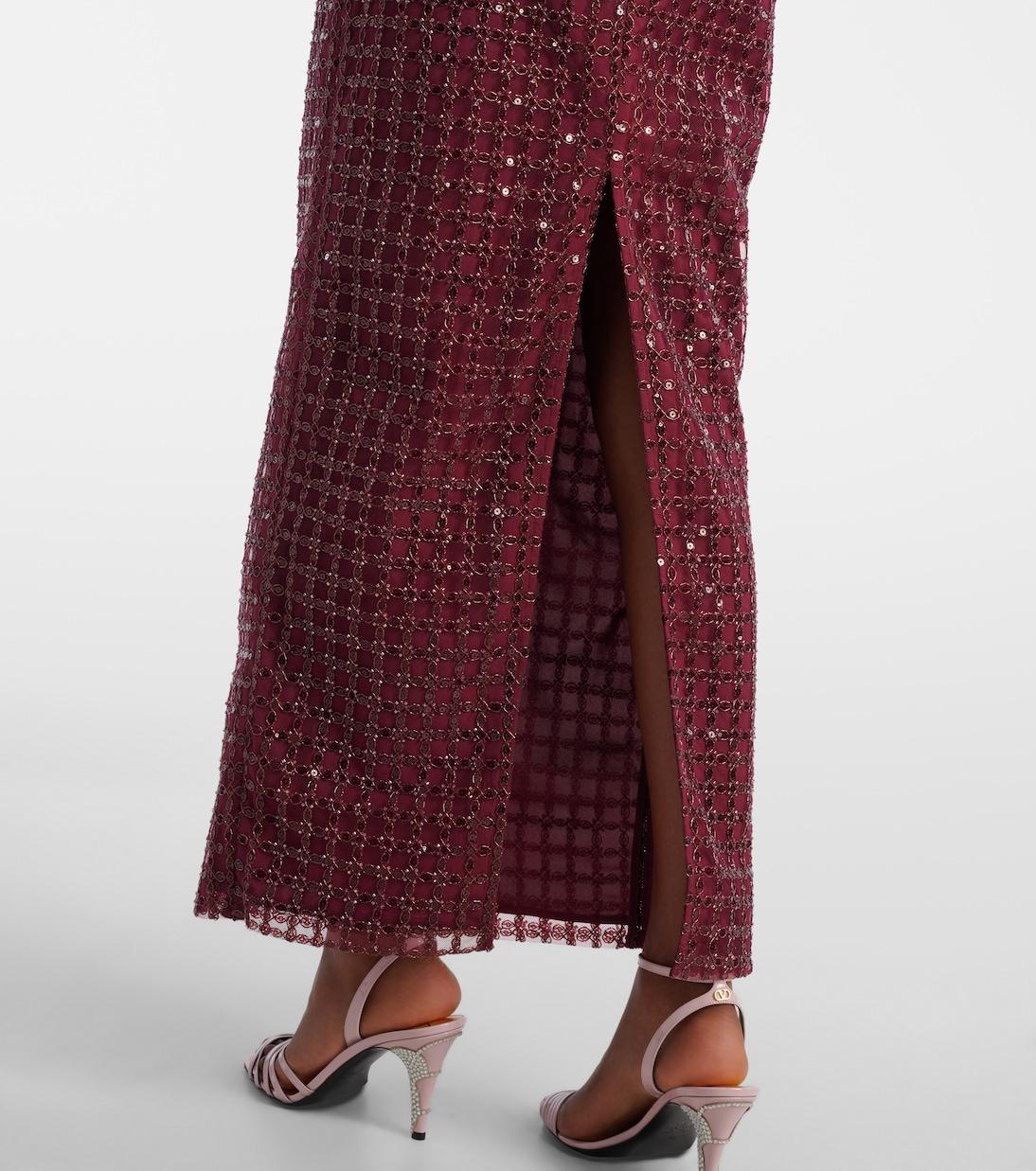 Заполните пробелы в своем выходном гардеробе уникальными и гламурными моделями от Rotate. Это макси-платье приталенного силуэта украшено узором из бисера по всей поверхности и разрезом сзади.