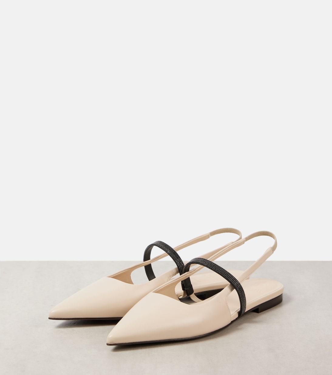 Острые кожаные туфли-лодочки на ремешке Brunello Cucinelli, Oat