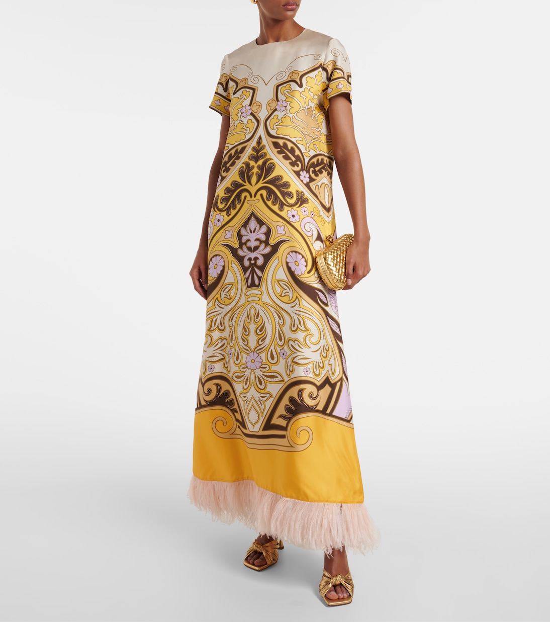 Шелковое макси-платье с перьевым декором Printed La DoubleJ, Spells Placee