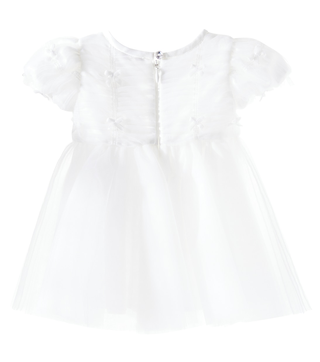 Сделайте особые случаи ещё более запоминающимися с помощью причудливых изделий от Monnalisa. Это изящное платье из лёгкого тюля с пышной юбкой и лифом с рюшами, украшенным крошечными бантиками.