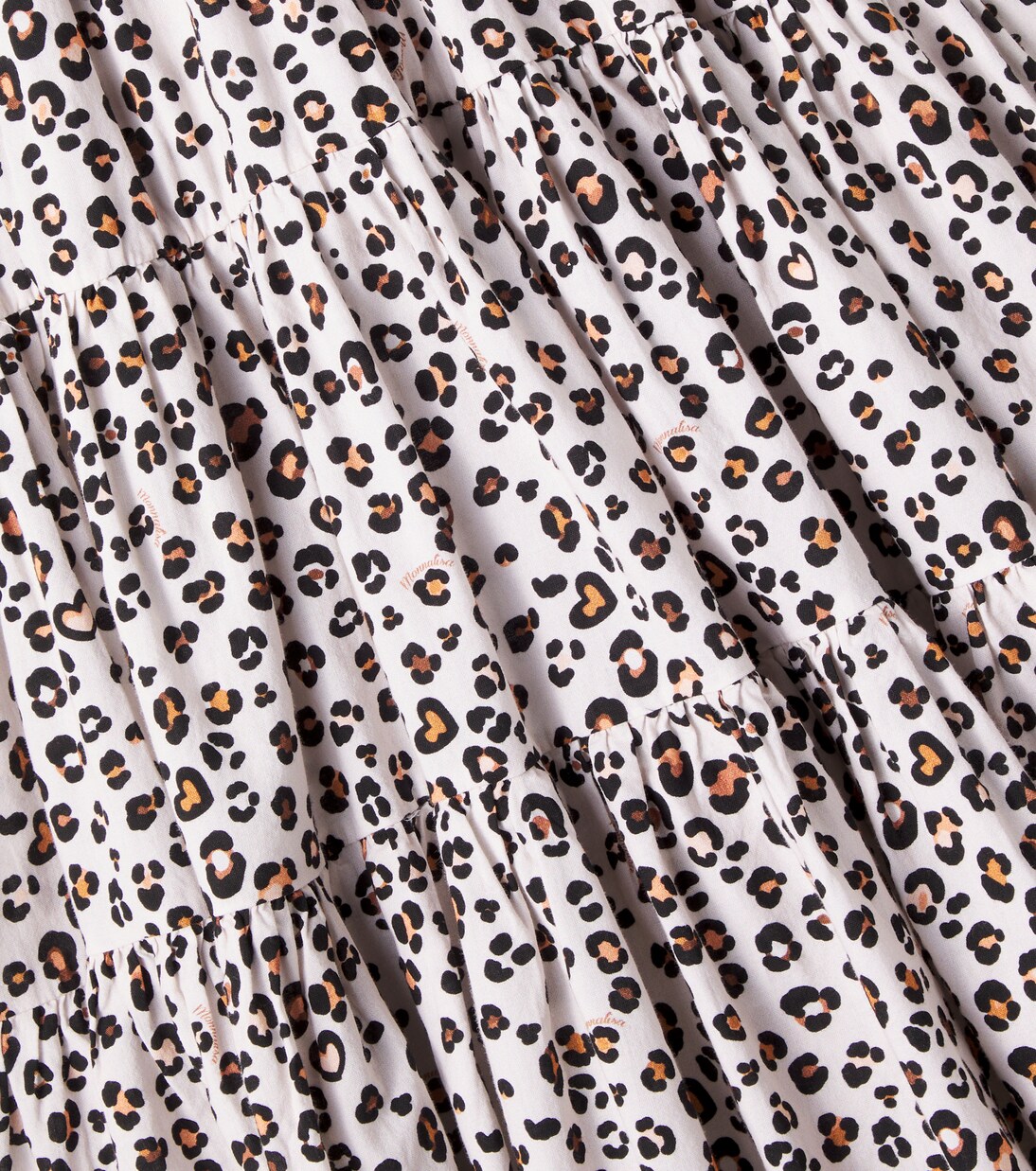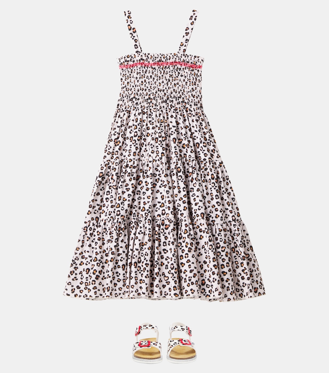 Сделайте особые случаи ещё более запоминающимися с помощью причудливых изделий от Monnalisa. Это платье из чистого хлопка с принтом по всей поверхности и лифом с рюшами, переходящим в расклешённую юбку.